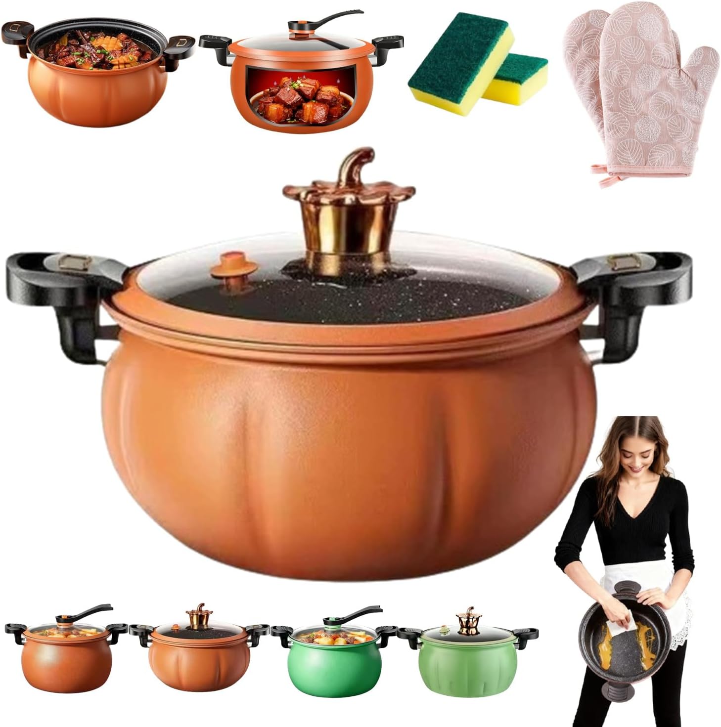Feature: 1. Cooks 20% faster with micro-pressure steam technology, locking in flavor and nutrients for quick, healthy meals. 2. Spacious 8QT pot fits whole poultry and family-sized portions, compatible with all stovetops. 3. Durable non-stick interior for easy cooking and quick, hassle-free cleanup with minimal oil. 4. Safe handling with cool-touch handles, secure lid, and a see-through glass lid to monitor food. 5. An all-in-one pot for versatile cooking: perfect for steaming, boiling, simmering, and more. Specifications: Name: Pressure Cooker Capacity: 8 QT Material: Lron,Non-stick interior, durable exterior Lid: Visual tempered glass lid Features: Fast cooking, micro-pressure system, anti-scalding handle Suitable For: Soups, stews, grains, noodles, family meals Compatibility: Induction, Gas, Electric, Ceramic etc Weight: 1.6kg Dimensions: 28*28*14.5cm Package Include: 1 PC * Multifunctional Large Capacity Non-stick Pressure Cooker 1 Pair * Gloves 1PCS * Sponge Note: 1.There may be slight differences in dimensions due to manual measurements 2.The actual color of the product may appear slightly different from the images due to variations in monitor settings and lighting conditions