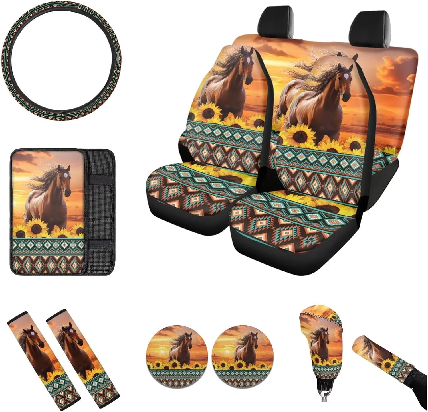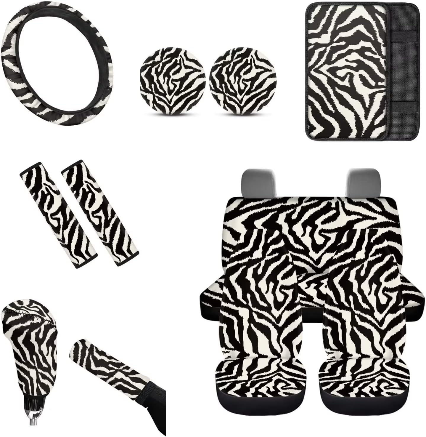 Suhoaziia 12 Pieces Car Seat Covers Full Set for Women Men, Automotive Seat Covers & Accessories, Fit Most Vehicle Cars Sedan Truck SUV Van FEATURES -Car seat covers can keep your interior looking new, protect your cars seats from dirt and spills, UV rays, spills, kids, pets, tools, entry/exit friction, food, sweat, ect. -Steering wheel covers are made of high quality elastic fabric with high density and high quality anti-slip backing. -Car seat belt pad can protect your shoulder and reduce the pressure from the safety seat belt. -Car coasters can keep the water from making a big mess when your drink starts to melt. -The car center console pad covers the entire top of the armrest, relieve stress off your elbow while driving and keep your arm from sweating on the center console. -Anti-slip surface design, suitable for most automatic gear shift knob of car, comfortable to grip. -Premium quality polyester fabric, sturdy, very soft & stretchy, easy to put on and feels comfortable to grip. GREAT GIFT Those cute car auto interior decorative accessories will make your every journey bright and positive. The perfect gift for your lover, family, friends and yourself in Christmas, Mother's Day, New Year's Day, Birthday, Thanksgiving, Valentine's Day etc. If you have any questions, please leave your messages, we promise to reply you within 24 hours and provide you with the best service. Thanks for coming to my store and enjoy your shopping!