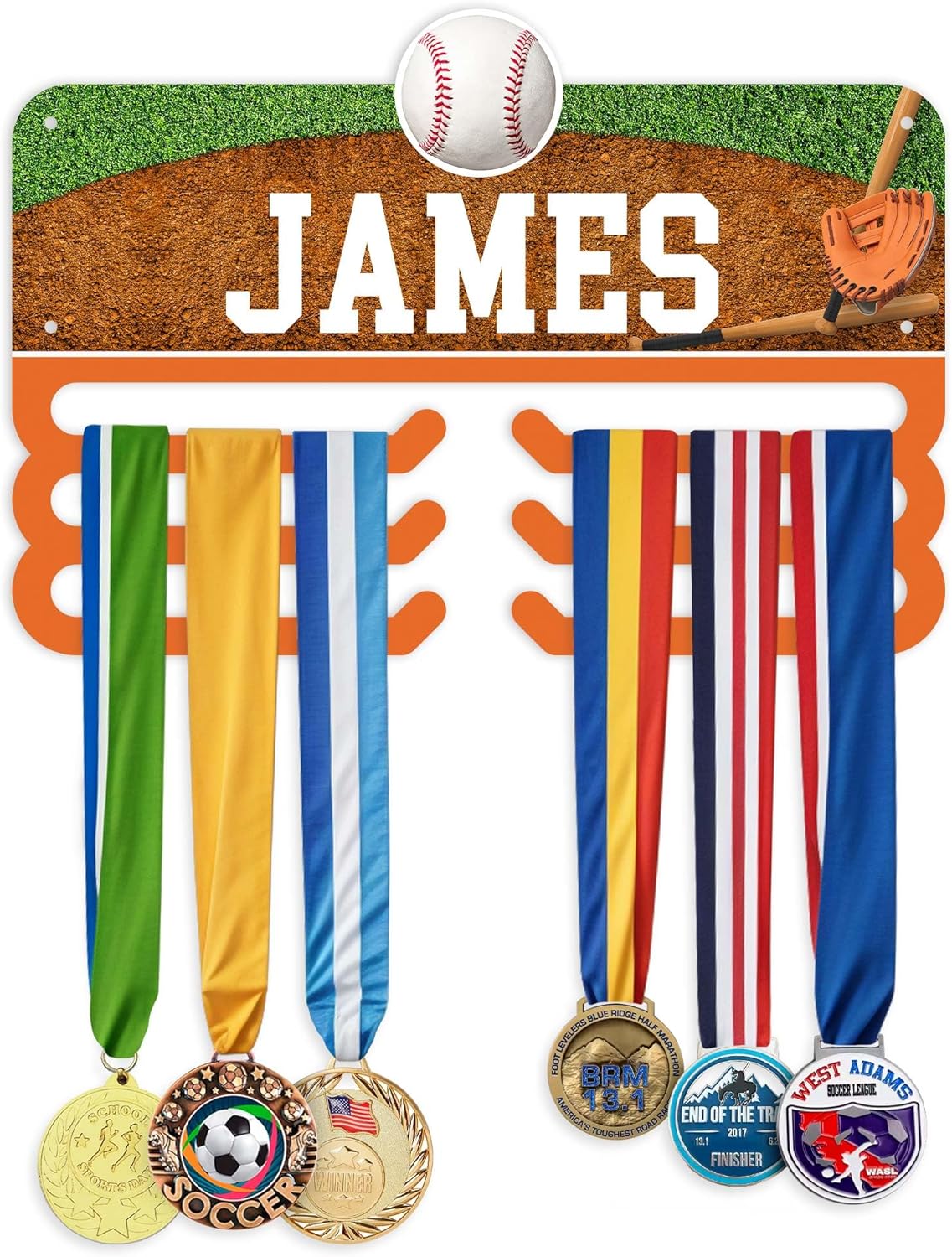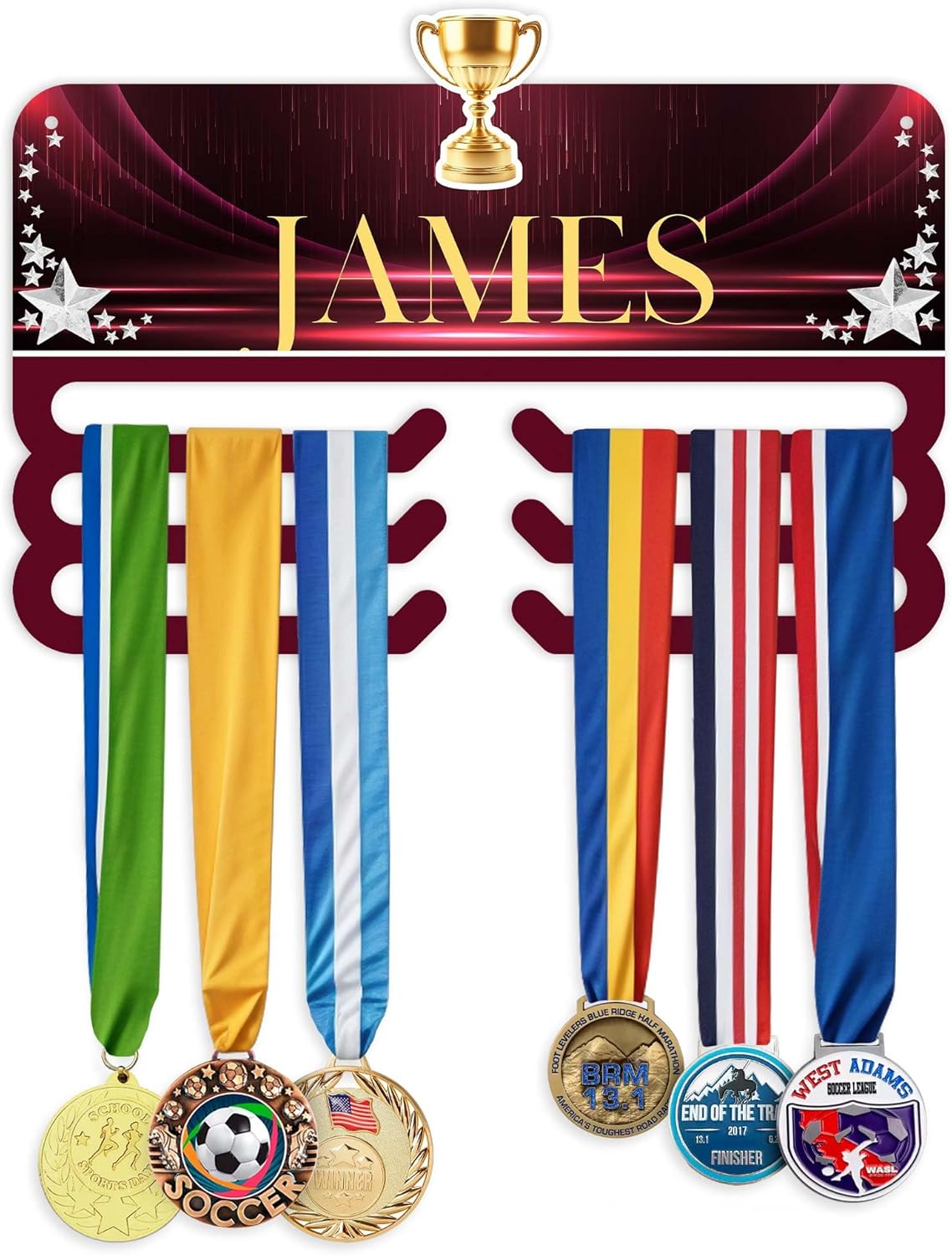 Medal Hanger Holder Display Rack Custom Soccer Theme For Medal and Awards Ribbons 13x19 Inches, Rust Free DiBound, Fade Resistant, Made in USA by My Sign Center