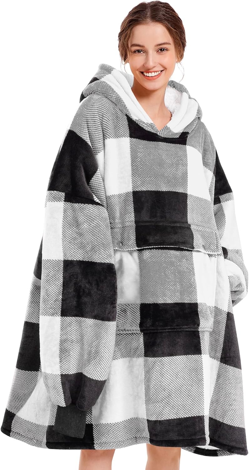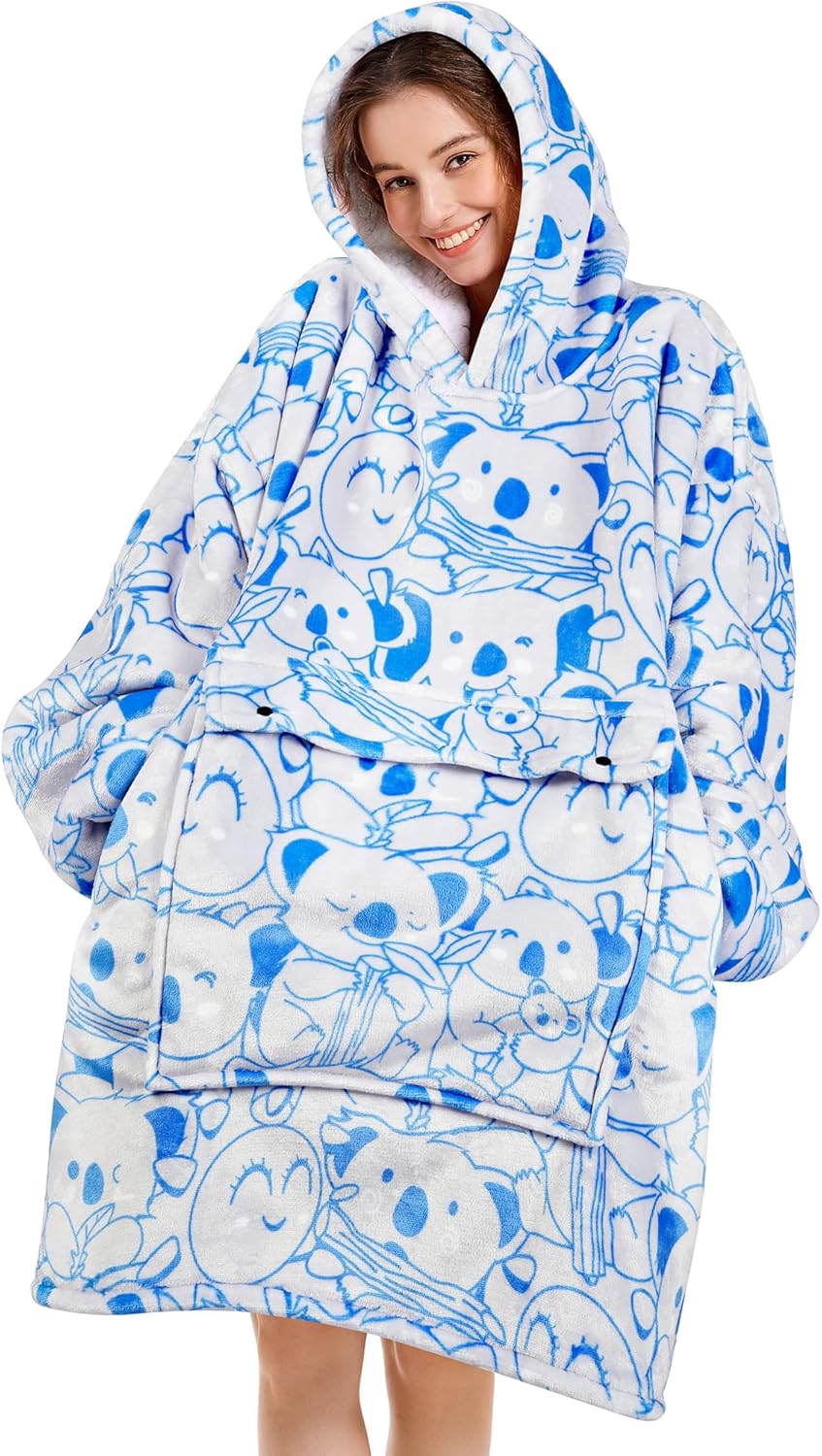 ✔ Cozy Warmth with Oversized DesignThis oversized blanket hoodie is designed as a wearable blanket hoodie for adults, weighing over 3 lbs for extra warmth. Made with soft 190g flannel on the outside and thick 220g Sherpa fleece inside, it feels like a giant hug. Perfect as an adult wearable blanket hoodie for lounging, reading, or watching TV at home.✔Comfortable & Relaxed FitUnlike tight or short styles, our hoodie blanket is extra long and roomy, giving you full coverage and freedom to move. Whether you’re looking for hoodie blankets for women or a unisex style, this wearable blanket adult keeps you warm and comfortable in every season.✔ Practical & Functional DetailsThe hooded blanket features ribbed cuffs to lock in warmth and a large kangaroo pocket to hold your phone, remote, snacks, or books. The oversized hood keeps your head cozy, making it a perfect wearable blanket hoodie for women and men.✔ Durable Quality & Easy CareThis wearable blanket is crafted with strong stitching and vibrant digital prints that won’t fade. Just toss the blanket hoodie in the washing machine with cold water and tumble dry on low—it comes out like new. A kawaii design adds a cute touch, making it stylish as well as practical.✔ Perfect Gifts for Every OccasionOur blanket hoodies for women are thoughtful birthday gifts for women, cozy Christmas gifts for friends female, or unique gifts for women on Mother’s Day, Valentine’s Day, Thanksgiving, and more. A versatile oversized hoodie blanket that combines warmth, style, and comfort—ideal for family and friends.