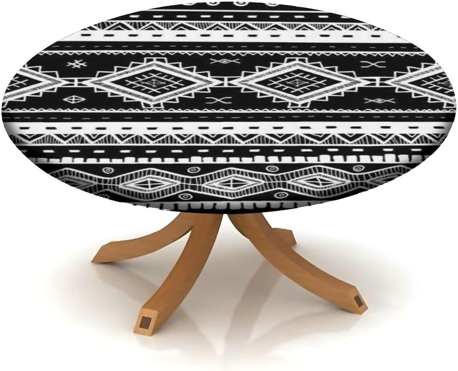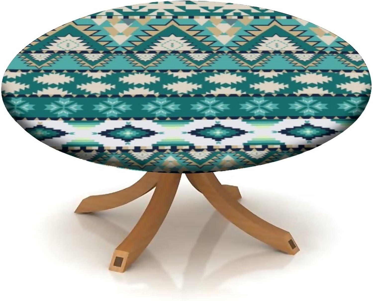 Native American Fitted Round Tablecloth, Waterproof Table Cover for Kitchen Dining Room, Geometric Traditional Culture Decoration Spill Proof Fabric Tablecloths for 48"-52" Table, White Green Red