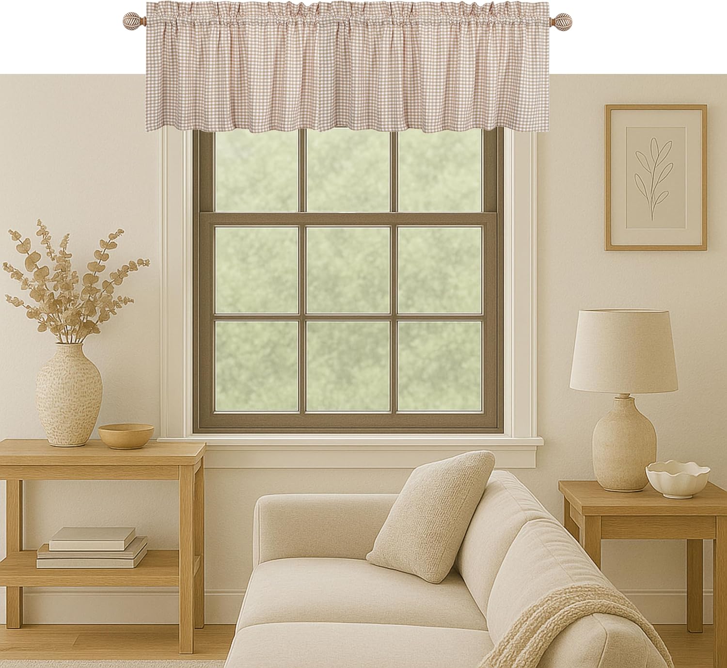 Whether dressing up a kitchen window or adding a touch of sophistication to a bedroom or living room, our valance curtains are versatile and complement any interior style. 1The rod pocket construction allows for effortless installation, eliminating the need for hooks or curtain rings, as they effortlessly slide onto your preferred curtain rod. Sold as a set of two, our valance curtains not only enhance your decor but also provide excellent value. The natural fibers of the cotton fabric lend a soft, inviting texture to your living space, creating a warm and welcoming ambiance. Their classic design and neutral color make them easy to coordinate with existing decor, while their quality craftsmanship ensures they maintain their shape and color through repeated machine washings, offering easy care and convenience. They not only frame your windows beautifully but also provide subtle light filtration and privacy without compromising on style. Enhance the atmosphere of any room with these graceful curtains that exude charm and sophistication, making them a must-have addition to your home decor collection.