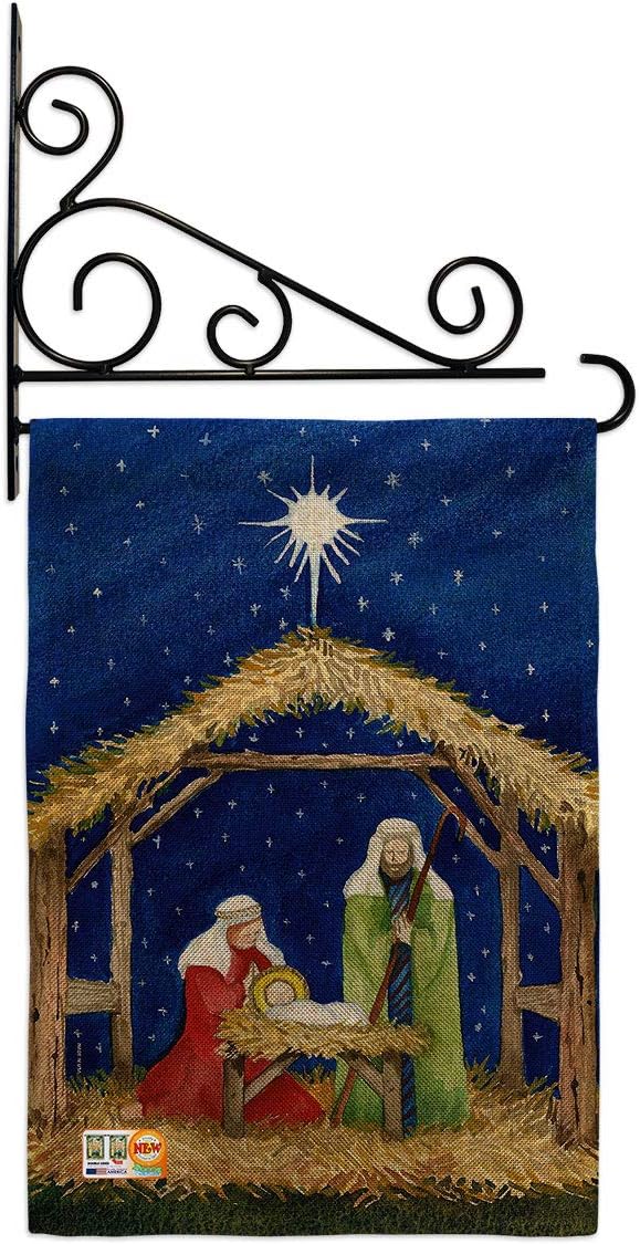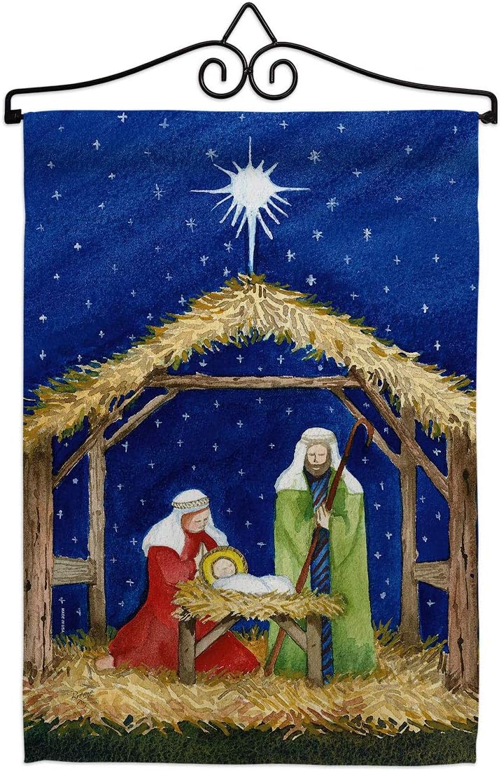 Nativity Beautiful Mini Garden Flag with Metal Garden Banner Pole Stand - Complete Set with Fansy Wall Bracket - 12" x 16" Power Coated Metal Flag HolderBreeze Decor have variety of Garden Flag Set for all occasions. Uniquely design for hanging indoor or outdoor use. We are committed to offering you exceptional values. Our customers enjoy displaying our Garden Flag Set for longer periods. Specification: Theme: Nativity Size: Garden Flag Set 13" x 18.5" Size: Metal Fansy Wall Bracket Print: Double-Sided Readable: Readable Single Side Material: Weather Resistant Polyester 300 D Stitching: Double Stitched Display: Vertical Hang Type: Sleeve Artist: Kathleen parr McKenna Special Features: Origin: Made In USAPackage Include: 1 pc x Mini Garden Flag 13" x 18.5" 1 pc x Metal Yard Banner HardwareFor more than a decade, we’ve been dedicated to manufacturing flags with no comparison in quality and beautiful designs. Our flags are made with our Pro Guard material that is soft to the touch and designs can be read correctly on the flag. A feature that our customers will love. We are committed to using eco-friendly inks that won’t leave a foot print in our environment. MPN: BD-NT-GS-114214-IP-P3-03-S-US18-WA 14214 64214