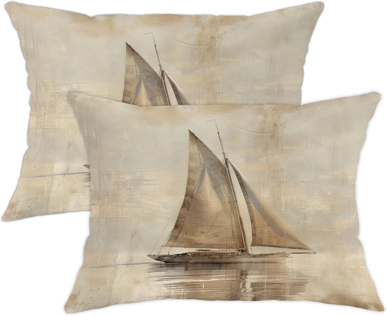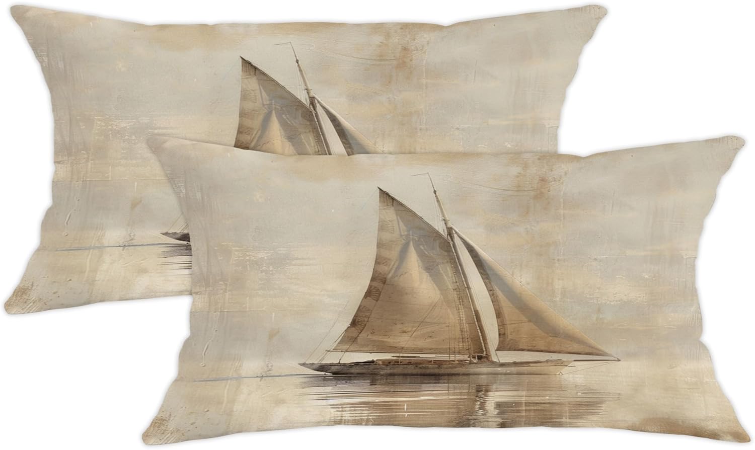 Nautical Pillow Covers Set of 2, Beige Sailboat Print Throw Pillows Case, Seasonal Decorative Vintage Coastal Decor Cushion Covers for Home Sofa Bed Couch 24x24 Inch