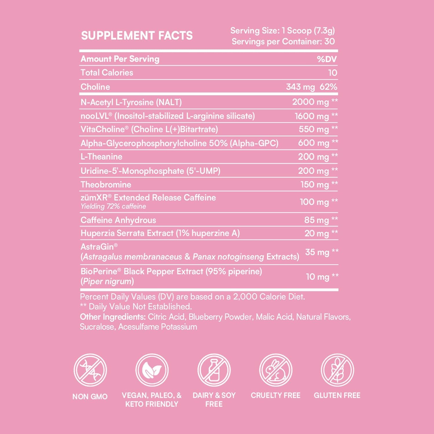 | Special Ingredients | AstraGin®, BioPerine®, VitaCholine®, nooLVL®, zümXR® Extended Release Caffeine |