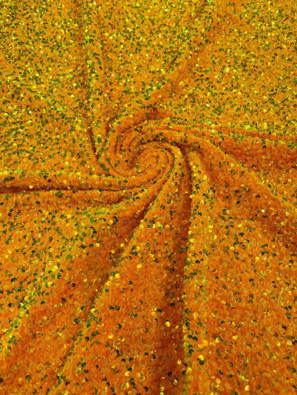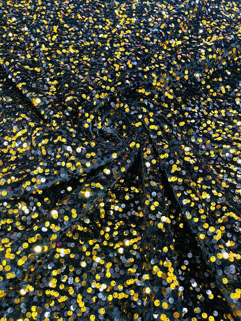 "Luxury Stretch Velvet Sequin Fabric Iridescent Yellow on Yellow Velvet By The Yard | Full All Over Sequin ( 5mm) on stretch Velvet Fabric Shine like a star with our luxury stretch velvet sequin fabric! This Luxury All over Sequin Stretch Iridescent Yellow on Yellow Velvet Fabric, available in a wide range of beautiful colors and designed to elevate any garment or accessory, with its full all-over sequin embellishment and plush velvety texture. If you're looking to add a touch of opulence to your next project, our Luxury Stretch Velvet Sequin Fabric is the perfect choice. The fabric is made with a blend of high-quality polyester and spandex, ensuring it is both comfortable to wear and durable. The fabric features full all-over sequin embellishment in a 5mm size, creating a beautiful shimmer effect that will catch the light and dazzle all who see it. The velvet texture of our Luxury Stretch Velvet Sequin Fabric adds an extra touch of elegance and sophistication. The plush feel of the fabric against the skin creates a sense of luxury that is unmatched by other fabrics. The stretchy nature of the fabric ensures a comfortable fit, hugging the body in all the right places. Our Luxury Stretch Iridescent Yellow on Yellow Velvet Sequin Fabric is easy to work with, making it an ideal choice for both professional and DIY projects. The fabric is easy to cut and sew, allowing you to create intricate designs and details with ease. The sequins are securely attached to the fabric, ensuring they do not come loose during the sewing process. The full all-over sequin design creates a truly unique texture that is soft to the touch and has a wonderful drape. The sequins reflect the light in a mesmerizing way, creating a dazzling effect that will have you turning heads wherever you go. ★★★★★ Features ★★★★★ ● Luxurious and high-quality velvet fabric with a stunning all-over sequin design (5mm) ● Soft and comfortable to the touch ● Its stretchy texture allows for easy movement and a flattering fit. ● Available in a wide range of rich and vibrant colors to suit any occasion ● Sold by the yard, allowing you to order as much or as little as you need for your project. ● The sequins are securely attached to the fabric ✔ Length: 36 inches ✔ Width: 58 inches"