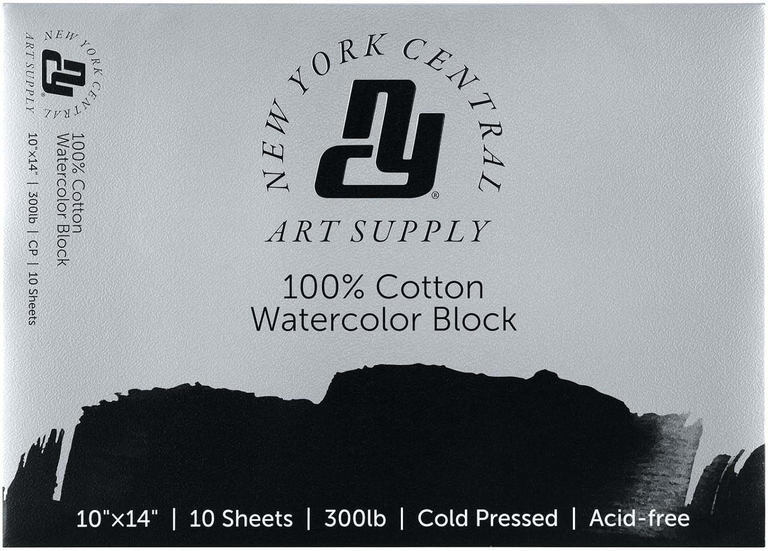 Introducing the New York Central Watercolor Block 300 lb Cold Press which is a pack of 10 durable sheets. This 8x8" watercolor paper cotton cold press is made on a slowly rotating cylinder mould, providing it a balanced grain that softens as a unit when wet. The paper is internally sized with gelatin sizing, ensuring the preservation of luster and transparency of watercolors. The 140lb cold press watercolor paper is acid-free and archival, making it perfect for professional watercolor artwork. The watercolor paper heavy-duty sheets can withstand a multitude of techniques including wet color blending, paper scratching, and scrubbing. There is no need to stretch the paper before using it, making it ideal for both wet and dry media. The professional watercolor papers are supported by a rigid backing board. All four sides of the block are glued to prevent the top sheet from curling and buckling as you paint, maintaining the integrity of your artwork. This high quality watercolor paper has been crafted with professional-grade standards in mind. Also available in 140 pound watercolor paper pack, both are perfect for artists, professionals, and students who require the best watercolor paper for their art endeavors. The watercolor paper cold press is available in multiple sizes, working well as a water color paper pad 9 x 12, watercolor paper 11x14, and watercolor paper 9x12. The cold press watercolor paper 300 pound is known for its durability and ability to preserve the original vibrancy of your colors. The watercolor paper block 140 lb cold press and 300 pound block is perfect for artists looking for a cold press paper that can maintain the integrity of their artwork over time. This cold press watercolor is an essential supply for all watercolor artists.