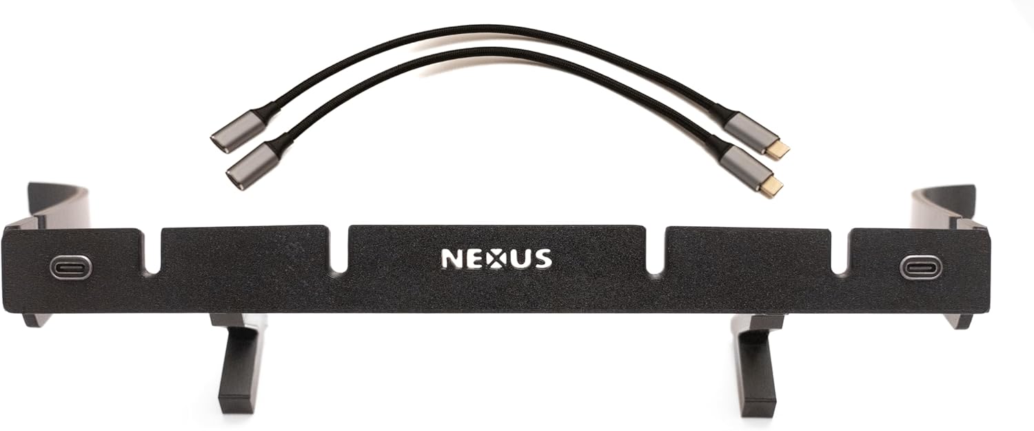 The NEXUS Cord Console allows you to feed cords from the dashboard charging cabinet to your devices mounted while driving such as smartphones, tablets, laptops, smartspeakers, GPS transceivers, radios, cameras and more. No more smashing the cabinet closed on delicate wires or trying to open the cabinet while driving to plug in your phone. The Cord Console assembles and installs in seconds with no tools required by simply snapping the legs and wings onto the faceplate, and locking the legs in the pre-existing latch holes for secure mounting on the roughest 4x4 roads. The Console has 6 access ports, including 2 side ports for running cables. Perfect for use with the Alexa Echo Auto or other vehicle smartspeakers. Also a perfect companion to the NEXUS Dash Track, Cubby Adapter or Cup Adapter when used to mount your electronic devices. Made in USA with rugged polycarbonate for high temperature and UV resistance. IMPORTANT: Product comes in two sizes 11 inch and 20 inch faceplates. The option you have chosen is compatible with standard 11 inch Sprinter Van charging cabinets with air-vent side wings as in the product photos. This product is NOT compatible with 20 inch rectangular Sprinter cabinets without side wings. See product comparison photo.