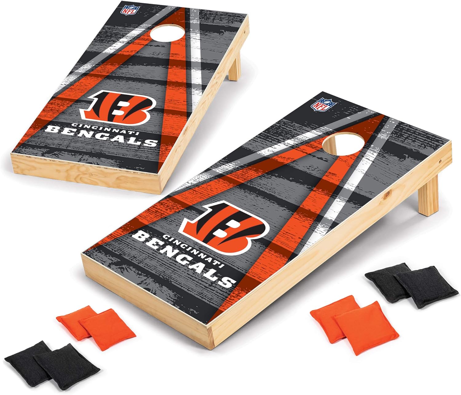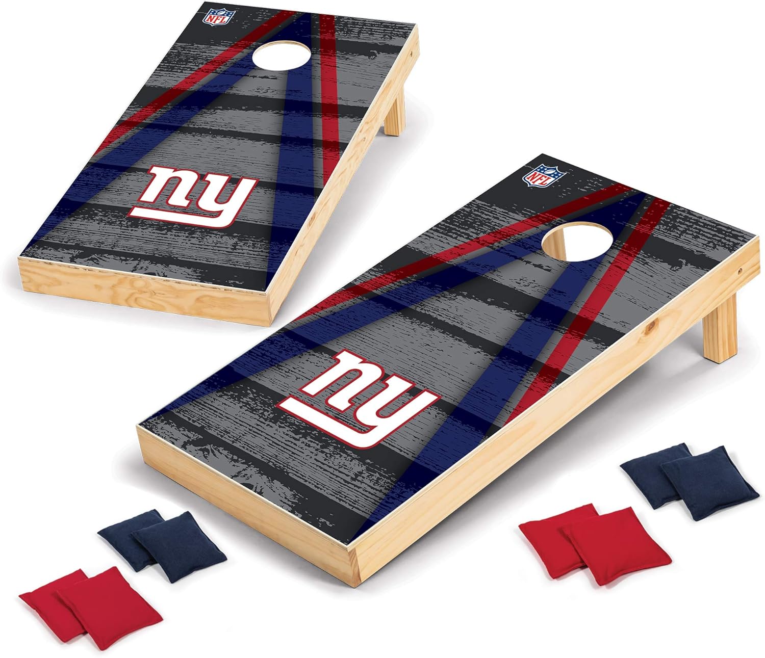 Wild Sports NFL Licensed 2’ x 4’ Regulation Size Wooden Cornhole Set - Bean Bag Toss with 2 Cornhole Boards and 8 Bean Bags - Outdoor Games & Activities for Backyard, Beach or NFL Games Tailgate Party.