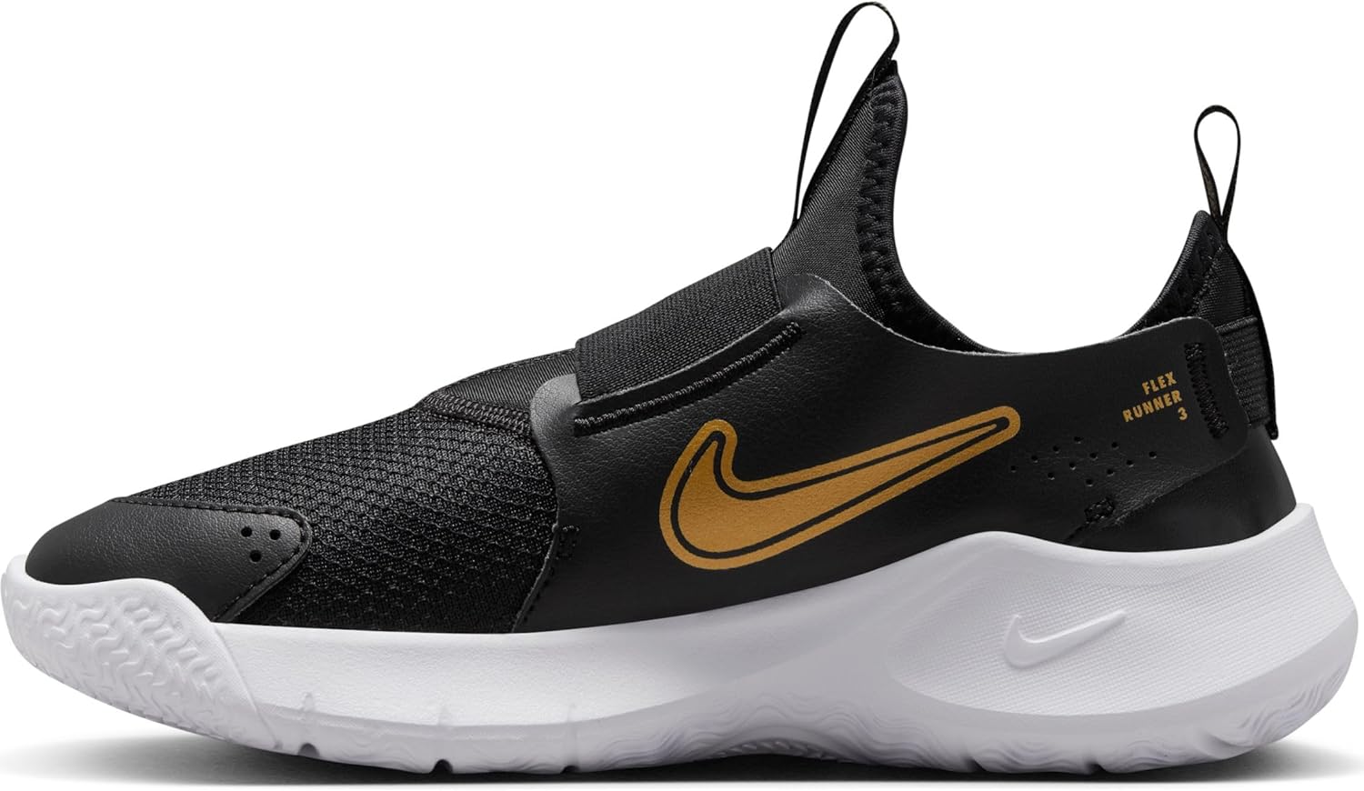 Running shoes made easy! Made for kids who love to play all day, the Nike Flex Runner 3 pairs a stretchy bootie design with a flexible outsole and grippy traction. No laces mean they're super quick to slip on and off. So, who's ready to race?