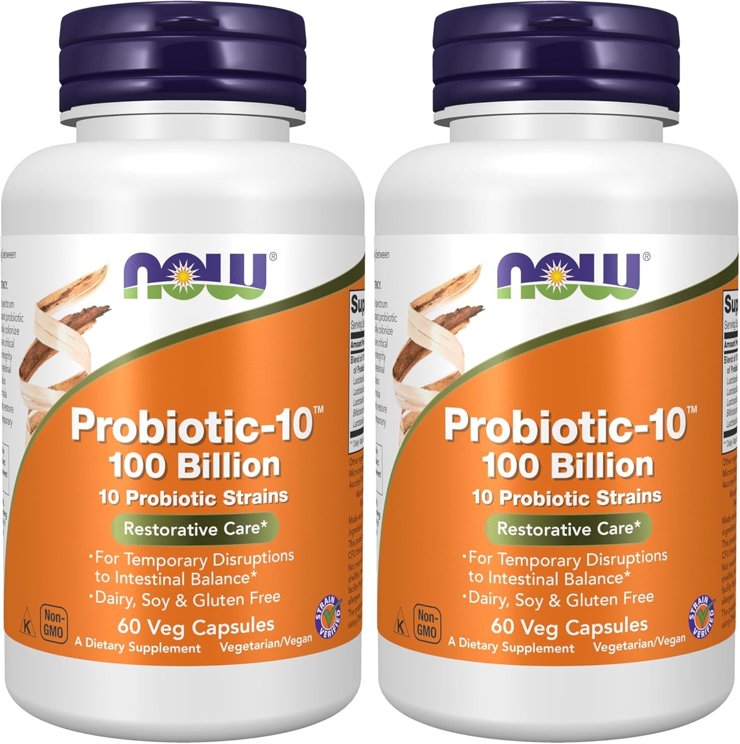 NOW Probiotic-10 offers a balanced spectrum of live organisms consisting of acid-resistant probiotic bacterial strains that are known to naturally colonize the human GI tract.* Probiotic bacteria are critical for healthy digestion, help maintain the integrity of the intestinal lining, support proper intestinal motility and participate in the detoxification process.* This potent Probiotic-10 formula delivers 100 billion live organisms to help restore healthy flora following occasional but temporary disruptions to intestinal balance.* This product is formulated to deliver a potency of 100 Billion CFU through the Best By date.