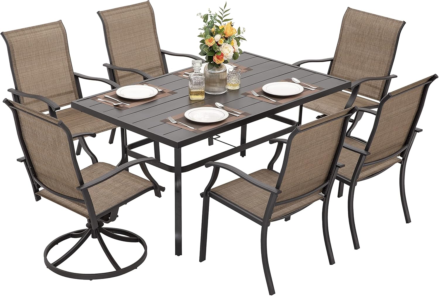 | Included Components | 6 Swivel Patio Chairs,1 Rectangular Patio Dining Table |