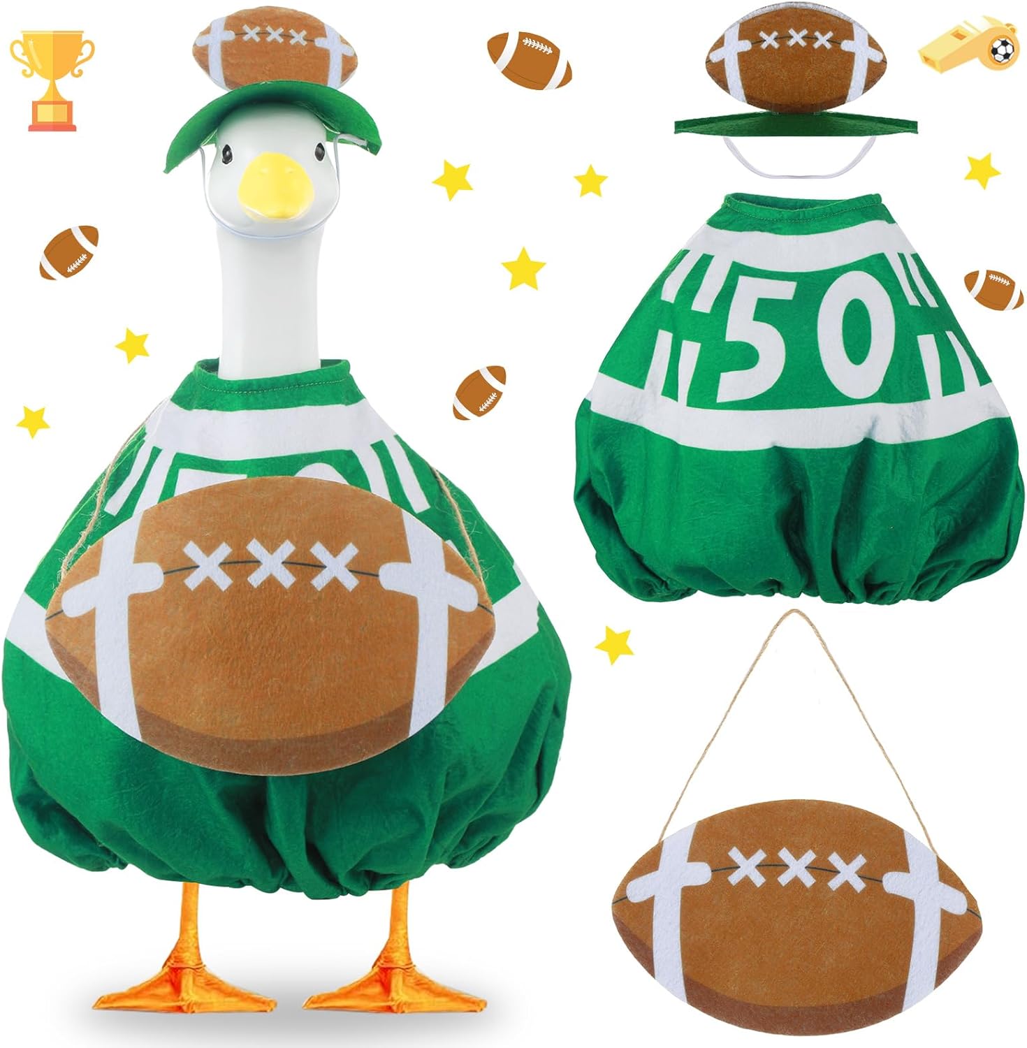 OBUSATT Yellow Raincoat Porch Goose Outfits Summer Geese Costume Set Cute Goose Yellow Raincoats Umbrella and Hat Fit for 23" Lawn Decor Outdoor Garden Yard Patio Statue Summer Decoration Specifications: Material: PP, non-woven fabric Package Includes: 1 x yellow raincoat 1 x umbrella 1 x yellow hat Color: Yellow Size: As shown This 23" yellow raincoat porch goose outfit adds a cheerful touch to your outdoor decor and quickly becomes a fun conversation starter. You can dress your goose in minutes and remove it just as easily for storage or cleaning. The glossy yellow raincoat features colorful flower prints along the hem for a fresh, spring-ready look. It comes with a matching hat and a rainbow umbrella for a playful, nostalgic feel. The porch goose accessories help your goose stand out and warmly welcome guests. The lawn goose costume is made from durable, weather-resistant PP and non-woven fabric. It repels light rain and keeps its shape in sun and wind. The colors stay bright, and the seams stay sturdy. It’s an easy way to add personality to your outdoor space and bring a little extra joy to everyday decor.