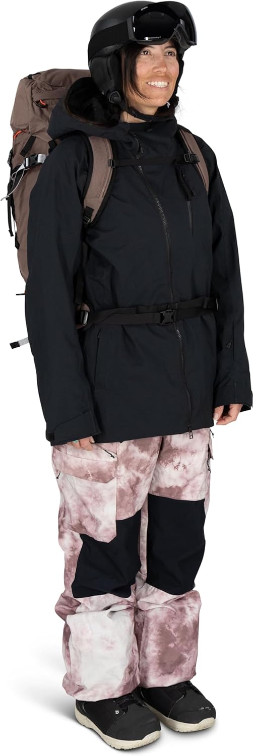The Osprey women's Sopris 45L is the ultimate high-volume ski and snowboard backpack for backcountry hut trips, multi-day tours and ambitious winter objectives. Designed for alpine endurance, the Sopris 45 offers a generous main compartment accessed via the top lid or backpanel for quick gear retrieval. The front panel features a dedicated avalanche safety kit pocket with room for a shovel, probe and more. External storage includes diagonal and A-frame ski carry, vertical or horizontal snowboard carry, ice tool attachments, sled-carry attachment loops and stowaway helmet carry. A removable top lid (145 grams), makes way for a cinch closure to keep pack contents contained. An under-lid rope compression strap, GPS/radio internal carry with mic harness webbing attachment points and snow-shedding backpanel round out the pack’s elite feature set. Built on a lightweight internal frame with a women's fit, the Sopris 45 delivers stable, balanced carry performance for all-day comfort. Made with bluesign® APPROVED, third-party certified 100% recycled 420D ocean-sourced nylon main body fabric, this durable technical snow pack is ready for your next backcountry adventure.