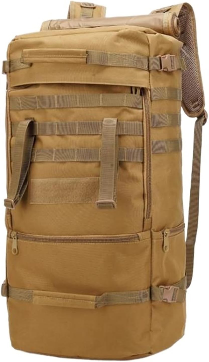 ==========Bags Mountaineering bagRain Cover : NoMaterial : CANVASBackpacks Type : SoftbackSize : 55cm*30cm*20cm with 3 different capacityTravel Bag material : High quality Oxford cloth+Waterproof NylonStyle : Travel outdoor climbing sports bagCapacity : 45-60L