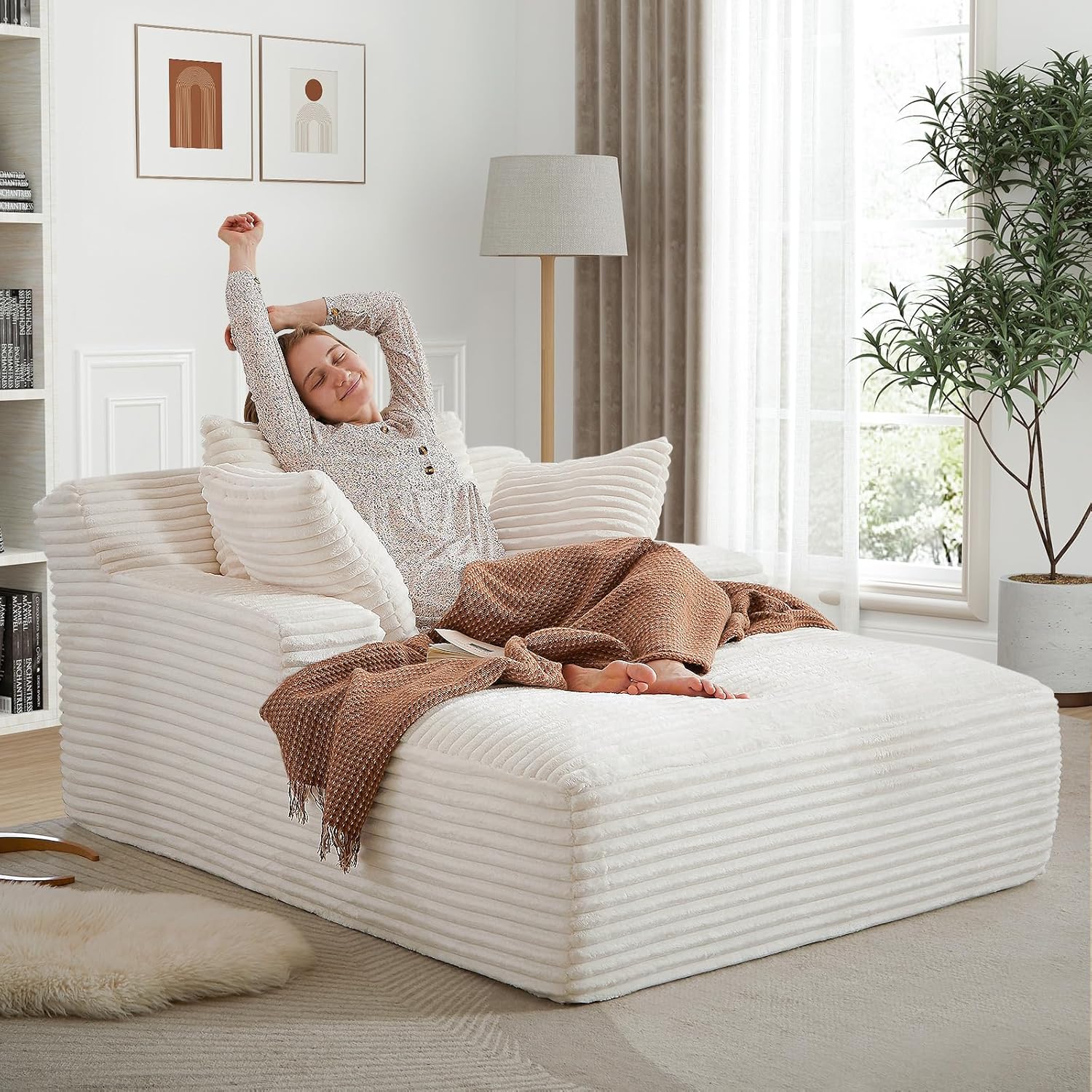 SpecificationOverall size: 62.2" D* 78.8" W* 33.8" HSeat size: 30.7" W* 52" DArmrest width: 8.7"Seat height: 17"Material: Corduroy FabricAssembly Required: No(Our chaise chair are packed in vacuum compression. So, they must be left alone for 48 hours after receiving and opening so the sponge can fully expand. Gently patting the sofa is conducive to quick recovery. Please wait patiently for 48-72 hours.)