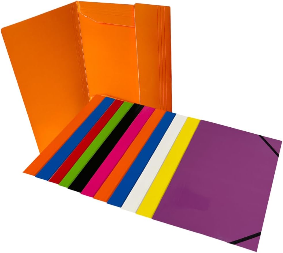Pack of 12 Janrax A4 Colour Laminated Card 3 Flap Folders with Elastic Closure. Holds A4 documents. Made from durable, hard-wearing card and is ideal for storing and organising A4 reports, presentations, notes and more. The 3 flaps and elasticated closure provide security for contents during transit. Features 3 folds to help expand folder when more documents added. Available in range of colours in the Janrax range.
