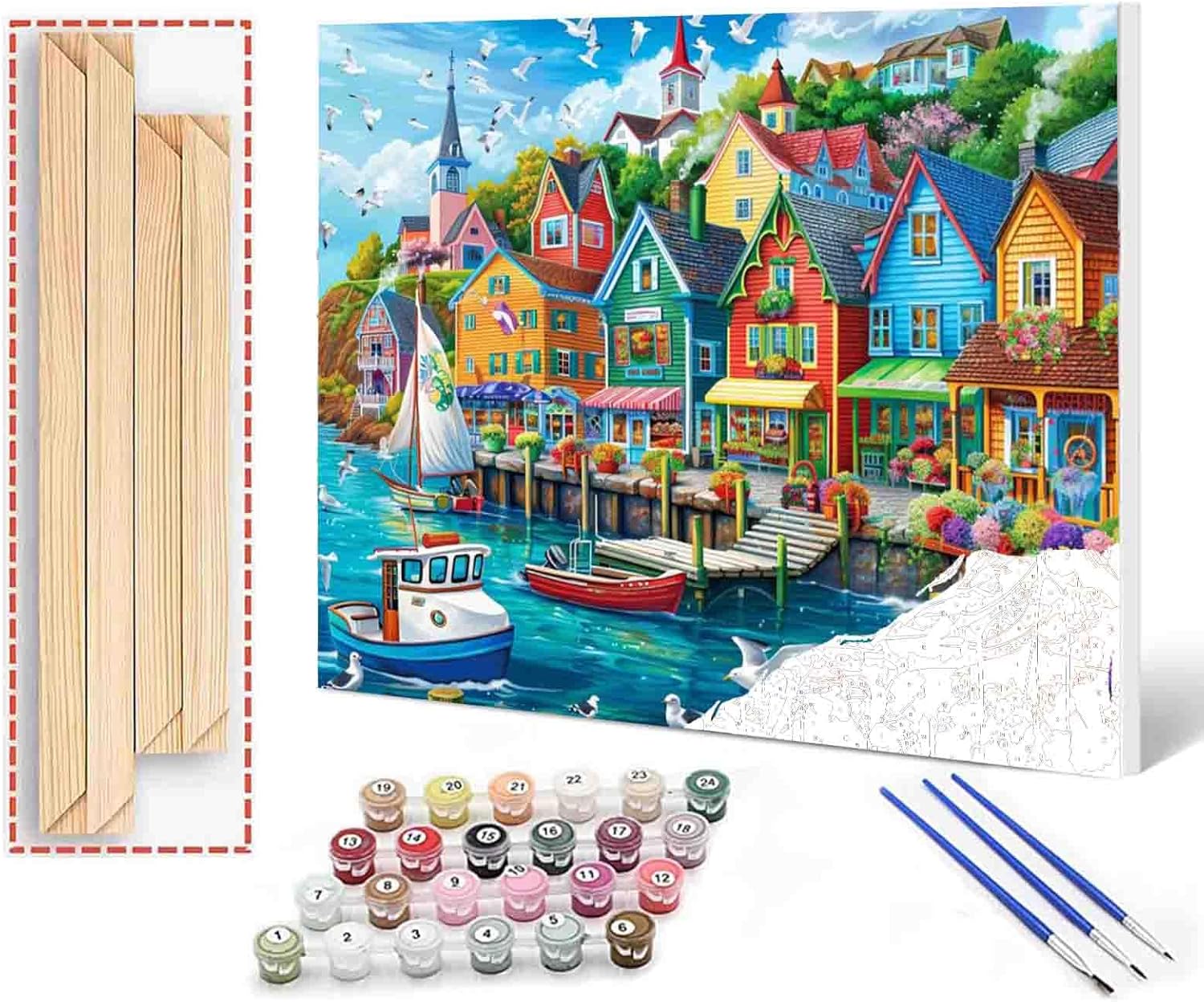 Canvas Oil Painting Kit for Adults Matching: --Anywhere at home of comfort. Your own room, living room, kitchen, garage, and wherever you can set your creativity free. --Bring it to the park. Set up the easel underneath the sun or tree. Dip your brushes in paint and follow the numbers. --Great for a school classroom. Give the students a treat. This is a project that will keep them busy and promote team building as each set comes with three brushes. --Do something fun for with family or friend or romantic partner. Amazingly easy activity to participate in together for loads of fun. Paint by Numbers is suit for --Beginner. Novice. Expert. --14 years old and up. --Whether you’re a stick figure drawing champ, or an advanced coloring book hero, or the next Van Gogh; Paint by Numbers is for you. Package Include 1* Pure cotton canvas 1* Photo for Reference 3* Paintbrushes (Small, Medium, Large) 2* Hooks 2* Nails 1* Set of Acrylic Paint Customized Printing Our Paint by Numbers can also be custom-made to suit your own size, photos or pictures.