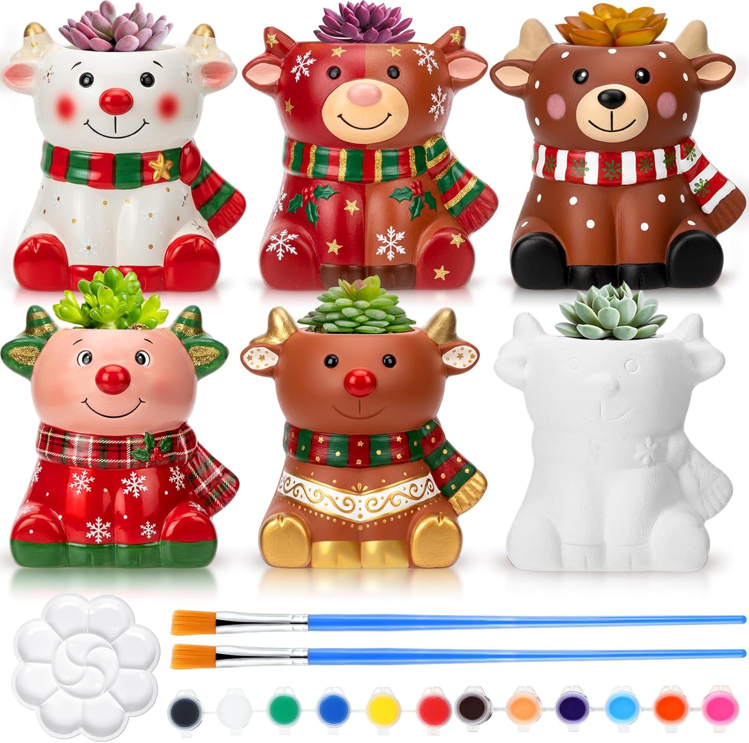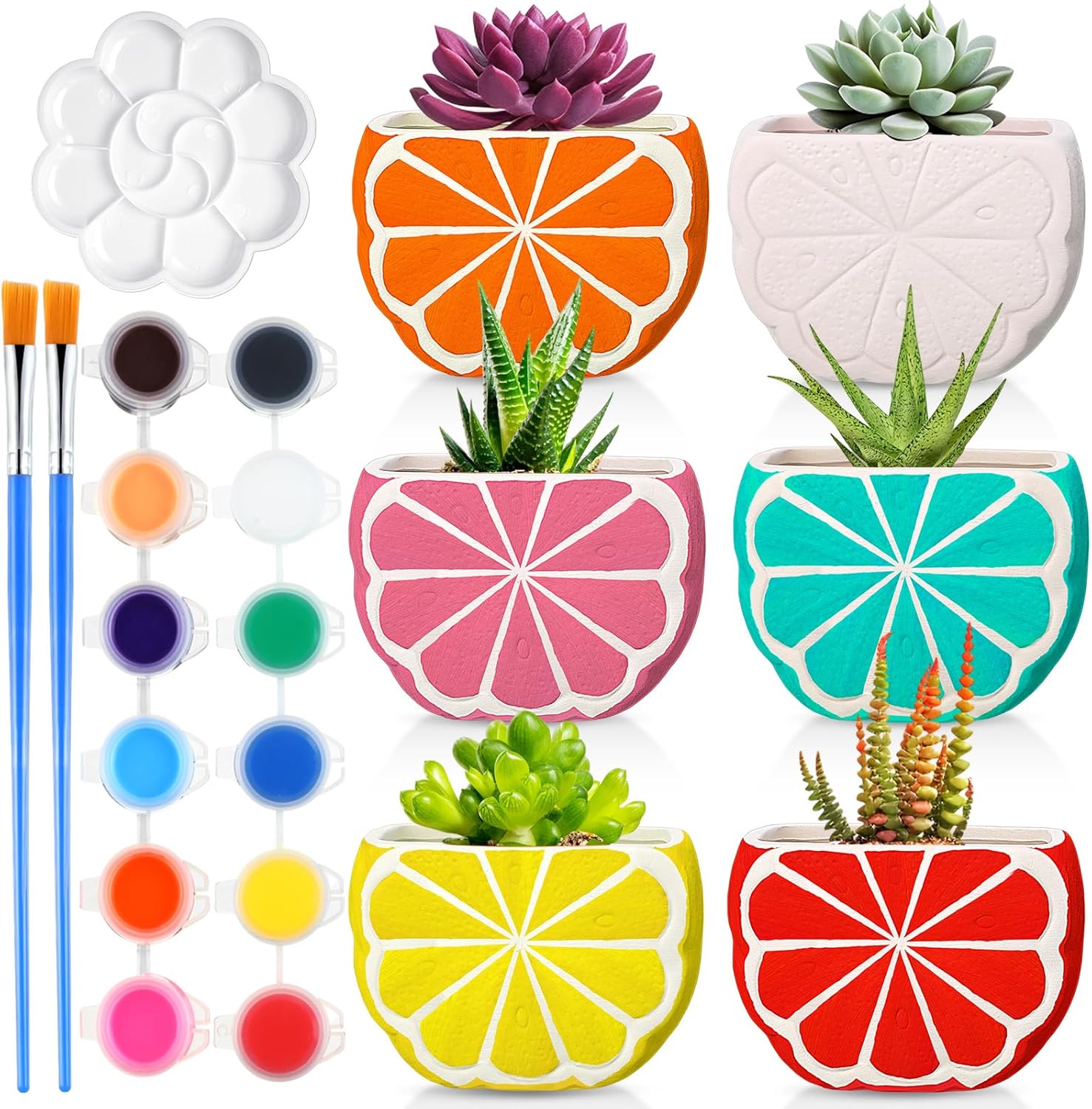 | Included Components | 6 unpainted mushroom planter pots, 12 colors of mini acrylic paints, 2 paint brushes, 1 palette |