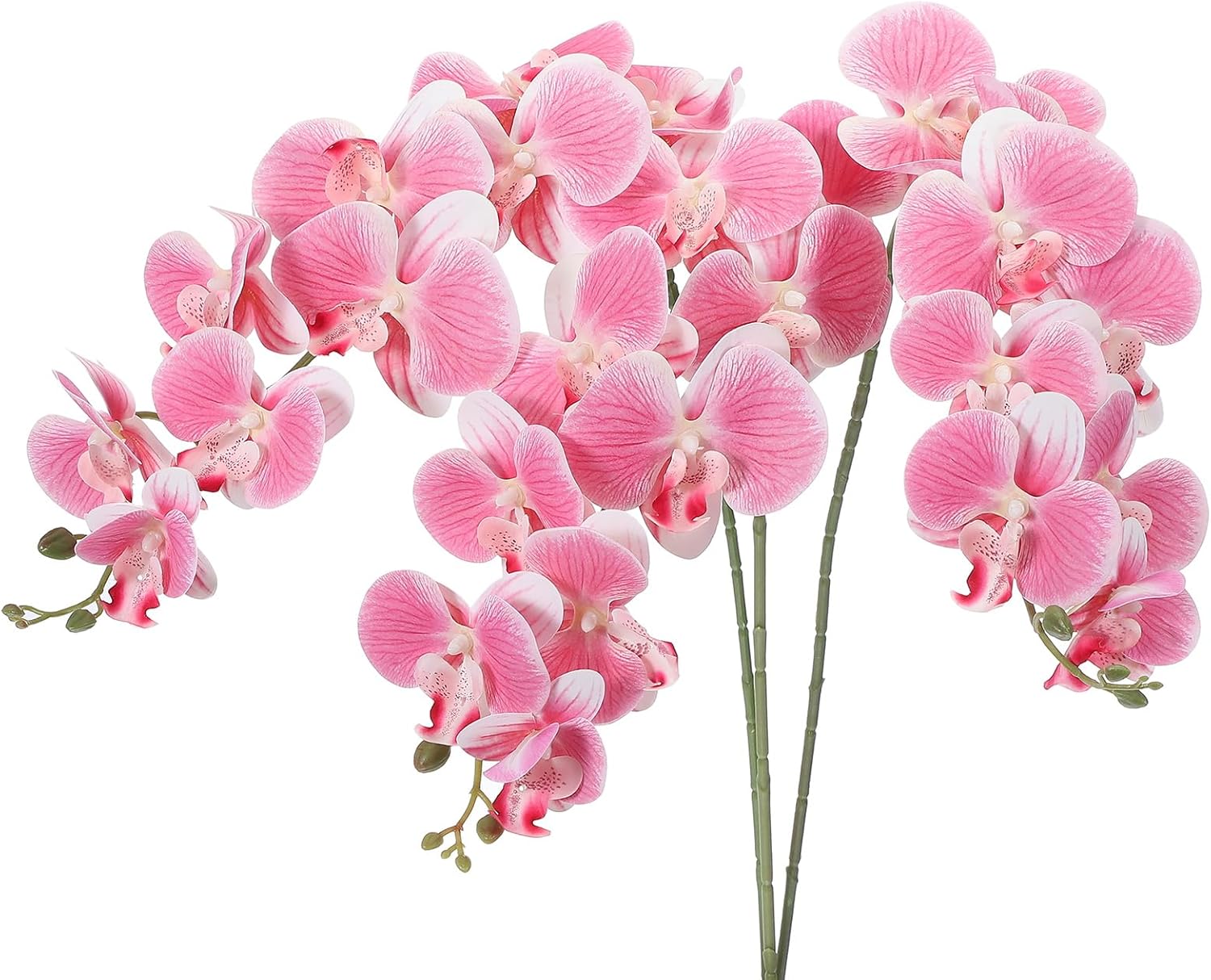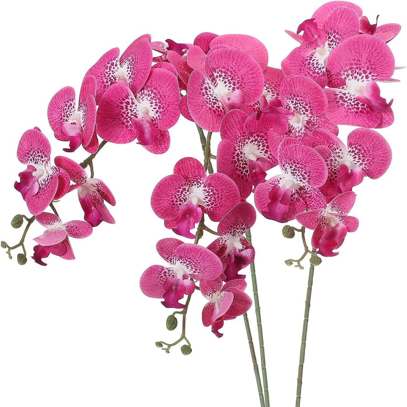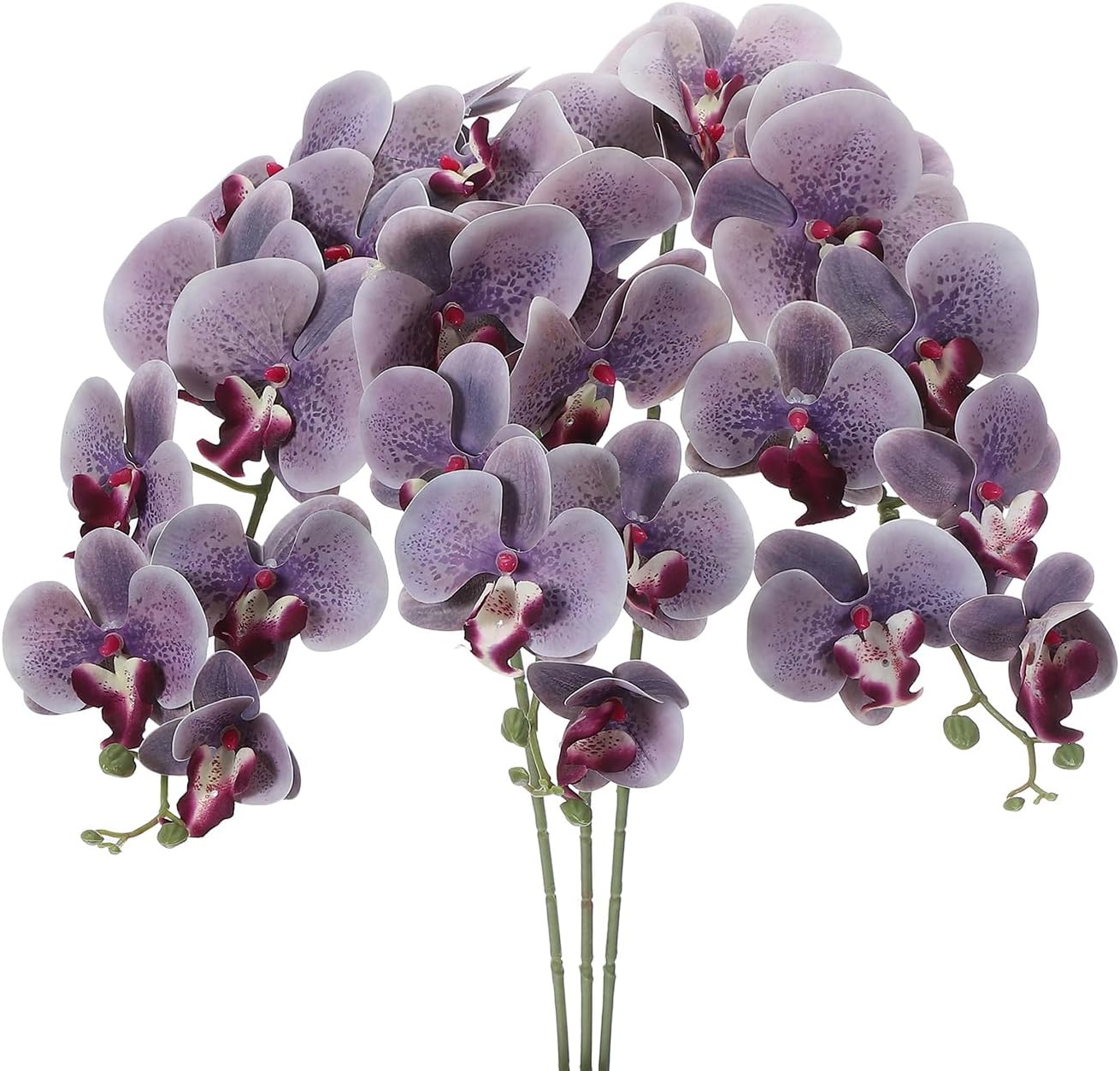 Artificial orchid flowers add a touch of beauty and elegance to occasions such as weddings, birthdays, parties, and home decor. They are particularly suitable for wedding decorations, tabletop centerpieces, bouquet arrangements and more.SpecificationColor: Black PurpleMaterial: PU, PlasticTotal Height: 105cm / 41 inchFlower Diameter: 11cm / 4.3 inchPacking List: 3Pcs x Artificial Phalaenopsis Orchid StemsAdvantageThe 9 heads artificial phalaenopsis flowers with stems are made of PU and plastic, crafted with fine workmanship, real touch and a beautiful appearance. They are lifelike and can be used repeatedly without worrying about wilting. The flower stems can be bent and shaped as desired.InstructionThese realistic faux phalaenopsis flowers can be used on their own or combined with other plant decorations to create a beautiful centerpiece or floral arrangement.NOTE: Due to the difference in natural light and display resolution, the item color displayed in photos may be slightly different from the real object.