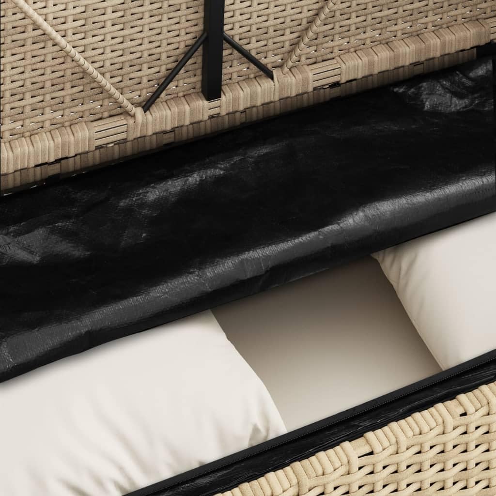 This patio bench not only offers outdoor seating but is also perfect for keeping your outdoor furniture cushions, gardening supplies, pool towels, and other items organized and easily accessible.Durable material: PE rattan, also known as poly rattan, is a strong, low-maintenance synthetic material that looks like natural rattan. It's lightweight, easy to clean, and commonly used for outdoor furniture due to its durability and weather-resistant properties.Storage function with water-resistant bag: The garden furniture features storage space under the seat, complete with a water-resistant bag for storing cushions, toys, and other items. The inner bag can be securely fastened to the outdoor furniture with hook-and-loop fasteners for added stability.Comfortable seat experience: This outdoor furniture, complete with a thickly padded cushion, offers a comfortable seating experience.Safe and easy to open and close: The gas spring makes it easy to open the lid and keep it from slamming shut or fingers.Removable and washable cover: These seat cushions feature removable covers for easy washing and maintenance.Good to know:To make sure your outdoor furniture stays beautiful, we recommend protecting it with a cover.Garden bench:Color: BeigeMaterial: PE rattan, powder-coated steelDimensions: 47.2" x 19.7" x 35.6" (W x D x H)Seat size: 43.3" x 18.5" (W x D)Seat height from the ground: 18.1"Armrest height from the ground: 27.2"Maximum load capacity (per seat): 242.5 lbUV-resistantAssembly required: YesCushion:Color: Cream whiteCover material: Fabric (100% polyester)Seat cushion filling material: FoamBack cushion filling material: Cotton fiberSeat cushion dimensions: 42.9" x 18.5" x 0.8" (W x D x T)Back cushion dimensions: 13.8" x 13.8" x 3.9" (L x W x T)Delivery contains:1 x Garden bench i