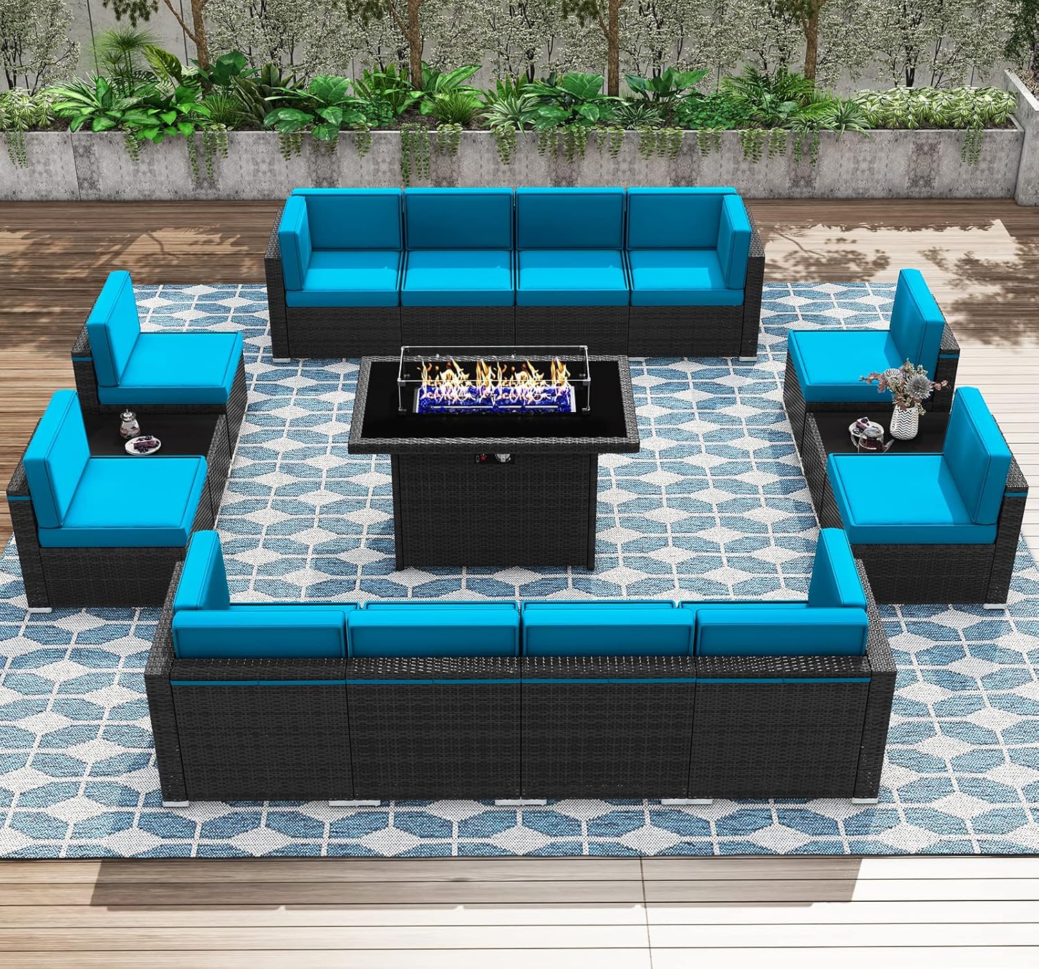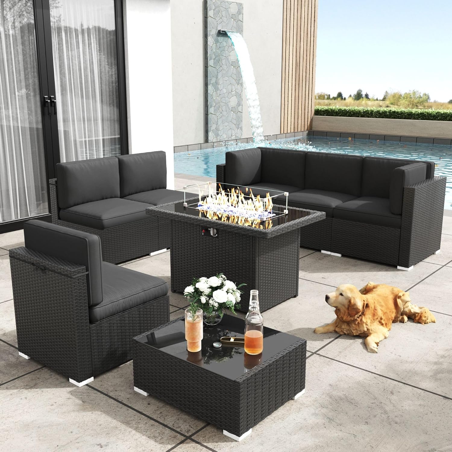 KHOLH patio furniture is ideal ensemble to gather your family in garden and create lasting memories. This timeless set designed to perfectly complement touch of elegance to your outdoor space. The wide seats provide ample room for everyone, accompanied by plush and comfortable cushions that ensure a cozy seating experience. Whether you are hosting a casual party or enjoying a peaceful afternoon, offering complete seating solution for relaxation and socializing. What Makes Our Product Unique: All-welded metal frame that's designed to provide lasting durability and support. Crafted Wicker that resists fading, ensuring it looks great & lasts for years to come. 4-inch cushions wrapped in weather-resistant Olefin fabric, for long-lasting enjoyment. The burner is made of high quality metal with high flame intensity and long duration. Easily rotate the chair to face 360 ¡ã any direction without moving the chair itself. Cushion covers made of wear-resistant fabric, which does not fade for a long time. Glass countertops easy to clean and maintain, making them more beautiful and durable.