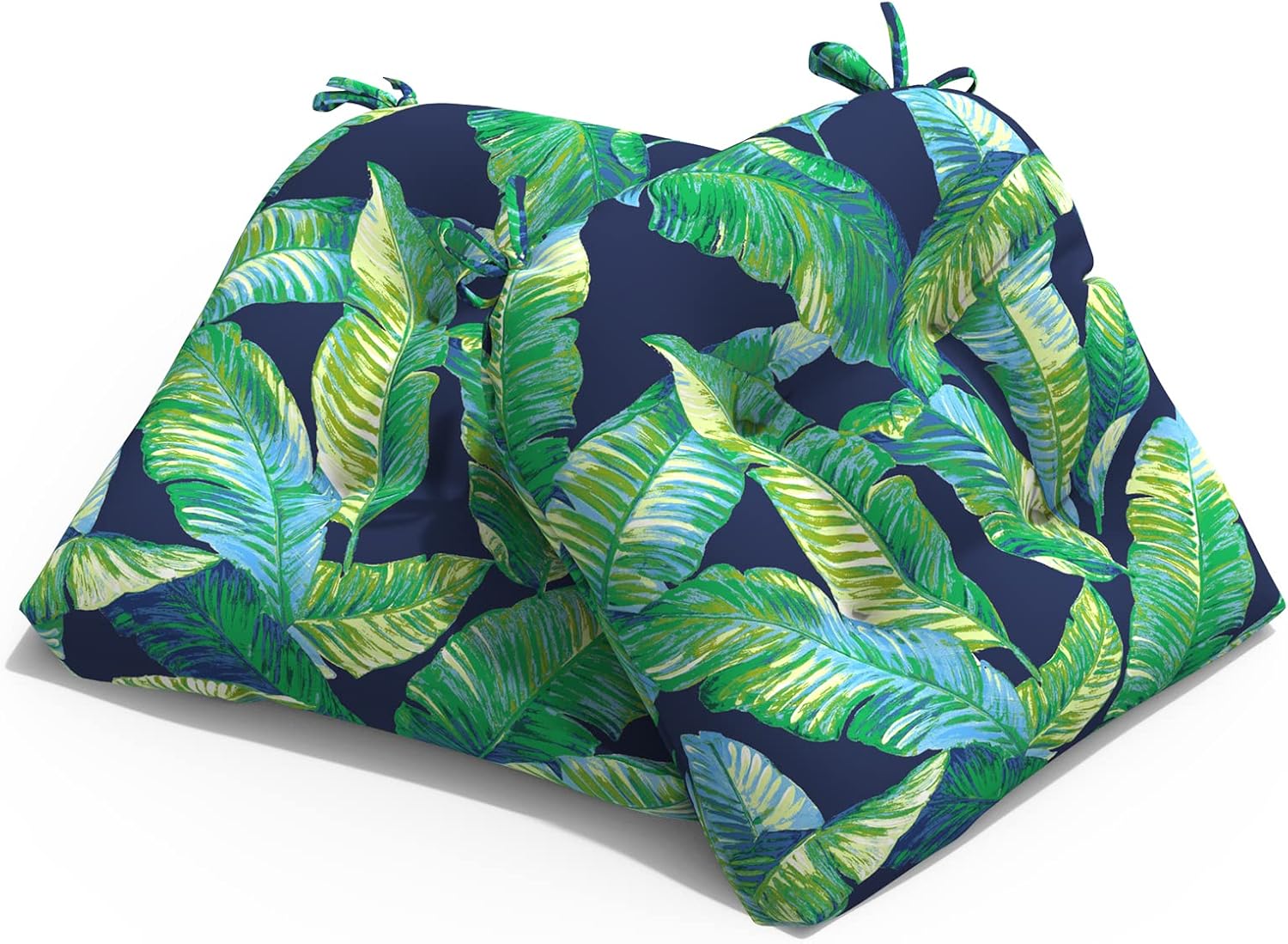 Patio Wicker Chair Cushions, All Weather Outdoor Tufted Chair Pads Pack of 2, 19 x 19 x 4 Inch U-Shaped Seat Cushions of Garden Furniture Decoration, Peacock Blue