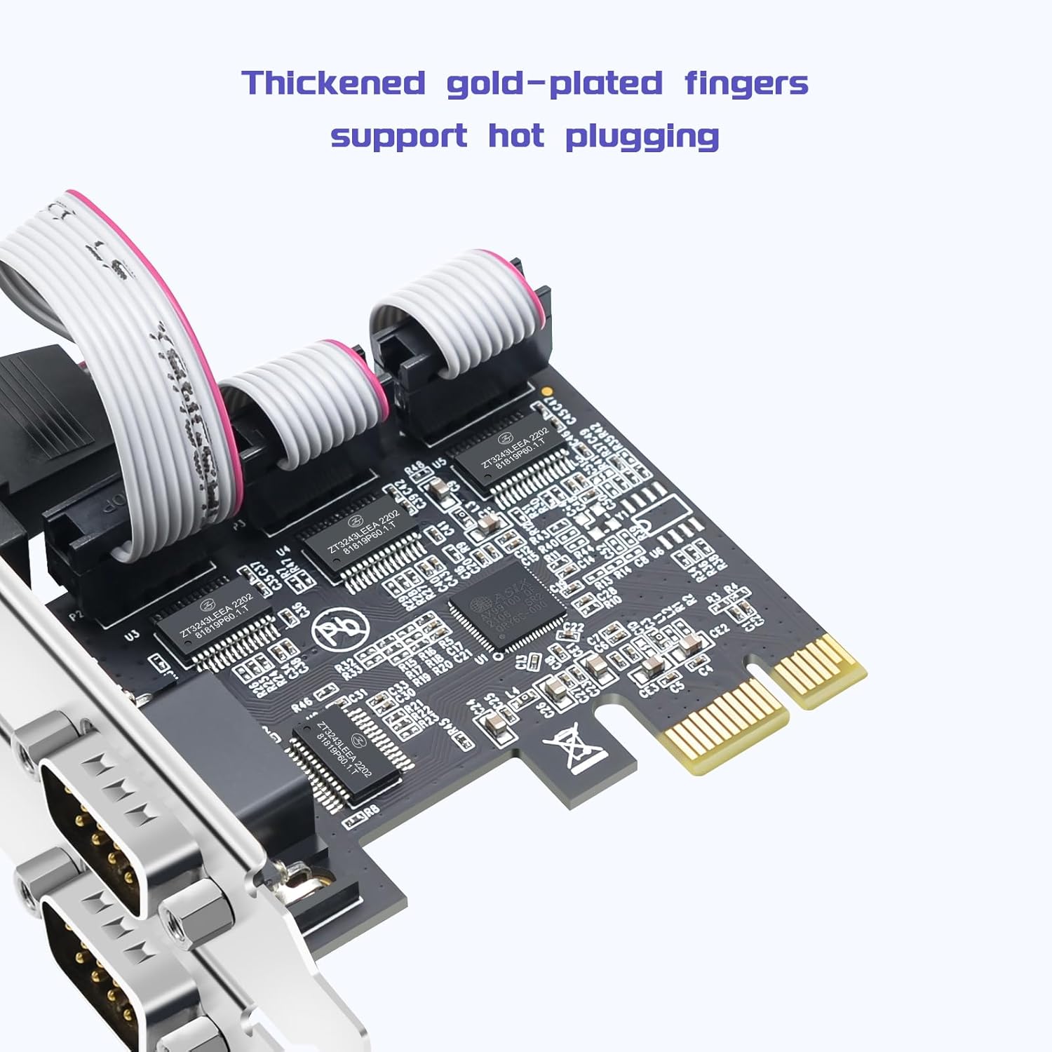 Industrial-grade PCIE to RS-232 serial port card offering high-speed, stable, and convenient connections. PCI-EX1/X4/X8/X16 slots fully supported, and supports systems including Win XP 7-10/ Vista Linux. Complies with IEEE 1284 spp/byte/ECC mode for compatibility.