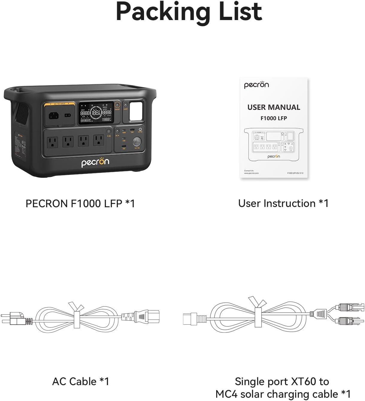 | Warranty Description | 2+3 years, Pecron warrants the F1000LFP power station for two years. If the original purchaser registers its purchase within 30 days of purchase, the power station warranty is extended for an additional 3 years. |