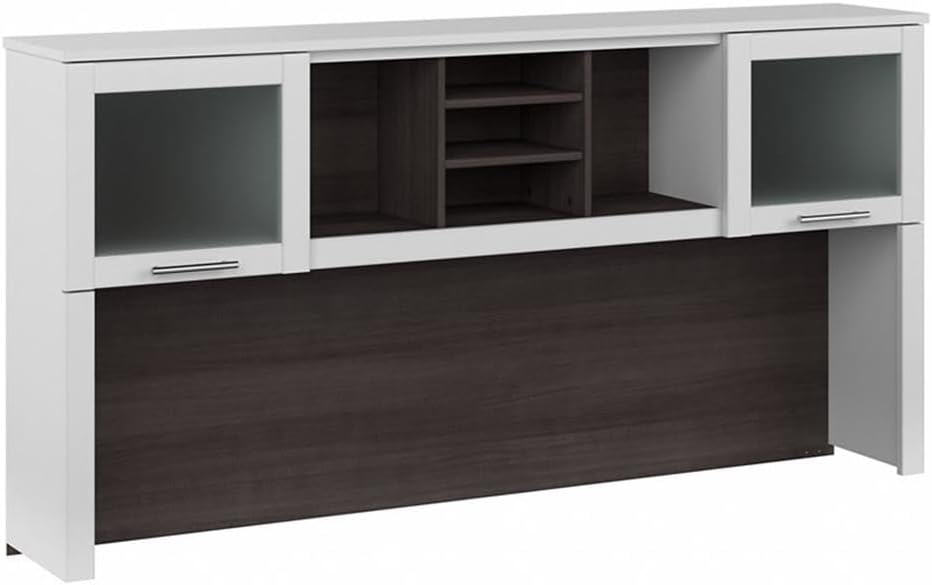 | Additional Features | Closed storage areas with lift-up frosted glass doors, Mounts on right or left side of 72W L Shaped Desk or on Office Desk (sold separately), Transitional styling includes an elegant finish with contemporary metal hardware |