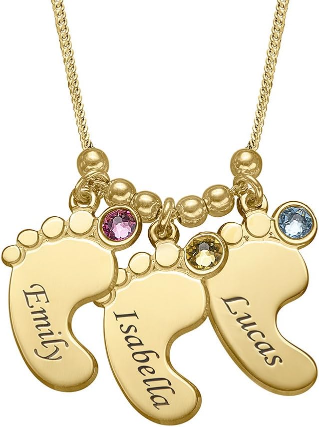 Moms love to celebrate their children, which is why they'll adore our Mom Jewelry - Baby Feet Necklace. Engrave up to five baby feet charms with the children's names and include a birthstone or a diamond. It is a great gift for mom any time of the year, including birthdays, Mother's Day, or Christmas. Celebrate moms everywhere with our personalized jewelry for moms.
