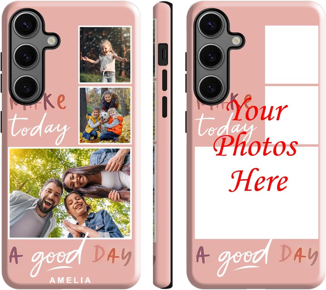 It’s simple to design your own phone case with pictures from your family photos or snapshots of your pet, you can add your own photos or text with unique style while provide protection for your phone. This also will be an special gift for your friends or family by display the most cherished memories. Specifications: Only Fit for Galaxy S24 Ultra Color: Black Material: TPU+PC Package includes: 1xPhone Case 1xPacking Box How to order: 1.Check your phone model. 2.Click “Customize Now” to start. 3.Upload the picture and place the pictures to the area you want. 4.Add Text(Optional), Chose the font and text color, you ca simple drag it to the area you want it to be. 5.Add to cart and place the order. Note: 1.Please upload high quality images if you expect a high definition print. Use the original photo instead of screenshot. 2.Please avoid the portrait on the camera part.
