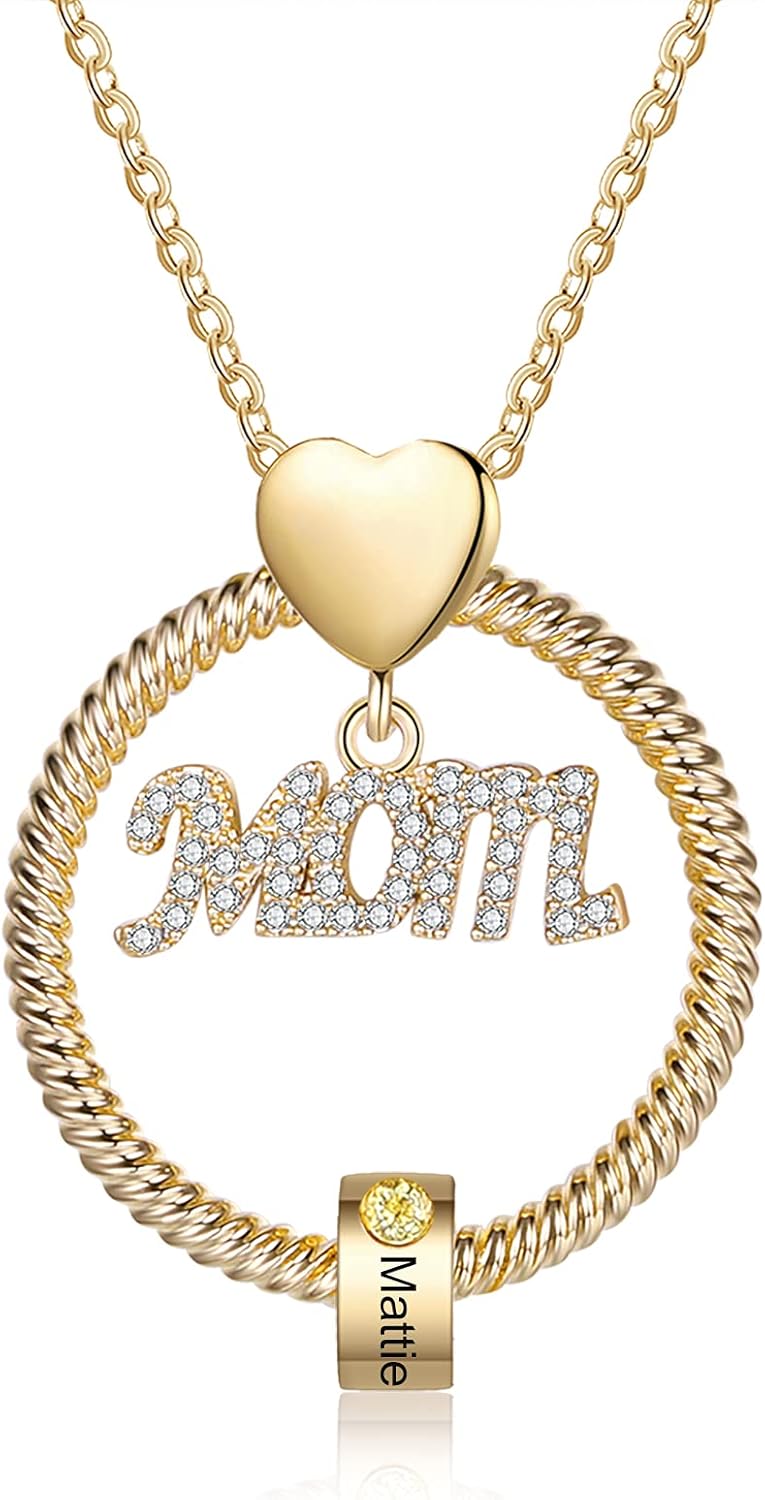 Zeekisfia Personalized Mothers Name Birthstone Necklace with 1-5 Names for Mom Customized Mother Daughter Necklaces Birthstone for Family Grandmother Mother's Day Gift for Mom