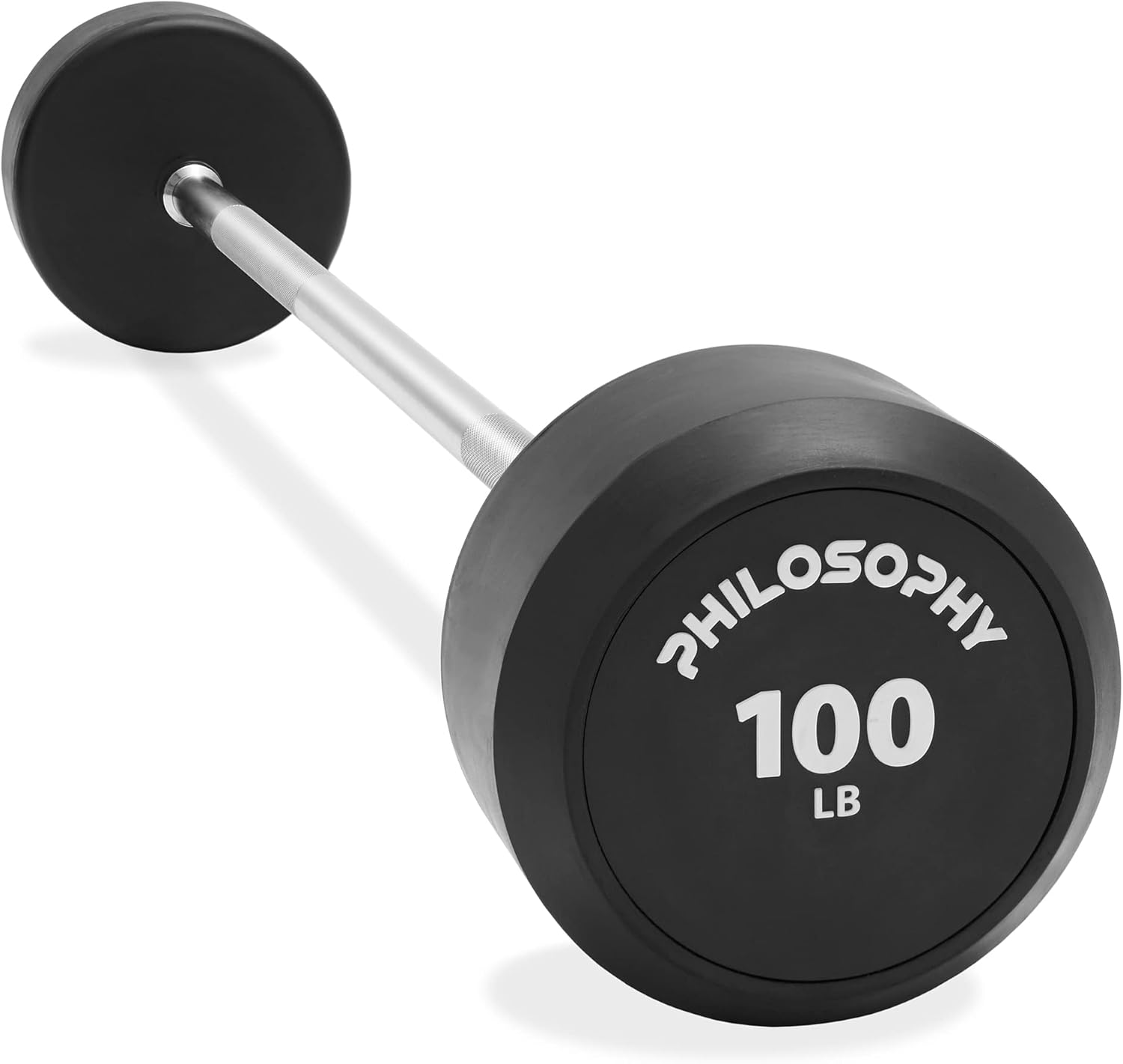 Philosophy Gym Rubber Fixed Barbell, Pre-Loaded Weight Straight Bar for Strength Training & Weightlifting