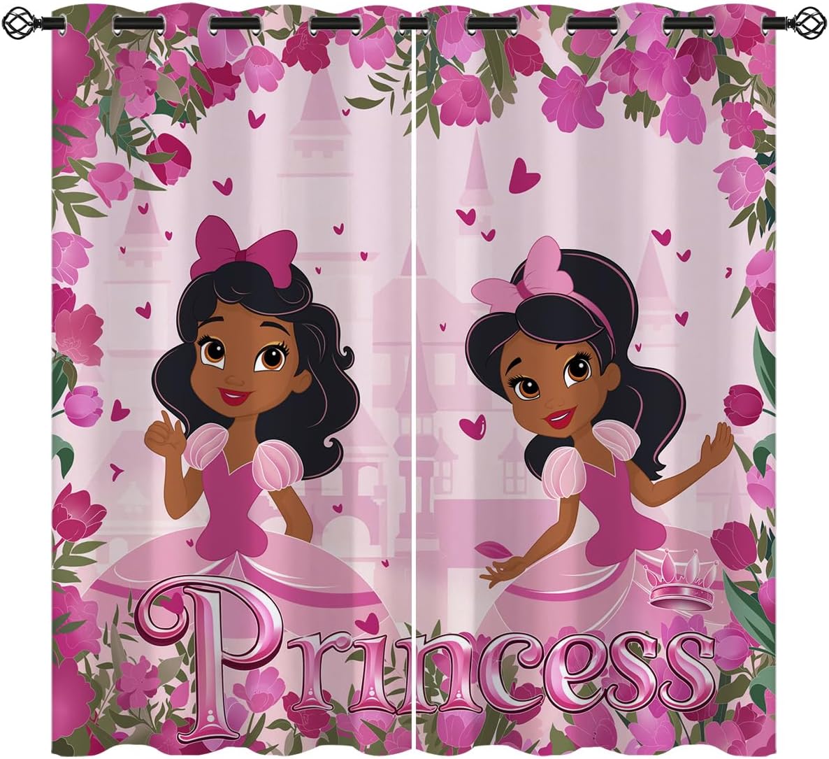 These print curtains are perfect for Living room, bedroom, kids room, kitchen, yard, patio, parlor, sliding door with Pink African American, Cute Little Ballet Princess pattern.- Unique design:· Save energy costs by insulating against heat and cold.· Reduce noises from busy streets and high-traffic areas.· Protect furniture from sun damage and fading.· Provides complete privacy when needed· Perfect for any bedroom, office kids room and living room.- Package Included:· Blackout window curtains 2 Pcs set ( two panels).- Material:· Our Blackout Curtain Liners are crafted from a durable soft and thick triple weaved blackout fabric which can block out sunlight and UV rays. The darker color of the fabric, the more light it can block.- Easy Care Instructions:· Machine washable in cold water· Do not bleach.· tumble dry on low· low temperature ironing- Notes:· For your curtains to be more perfect, please choose a size 5-10 Inch larger than the actual window width.· here may be slight differences in colors on different displays. If you have any questions about the product, please feel free to contact us.