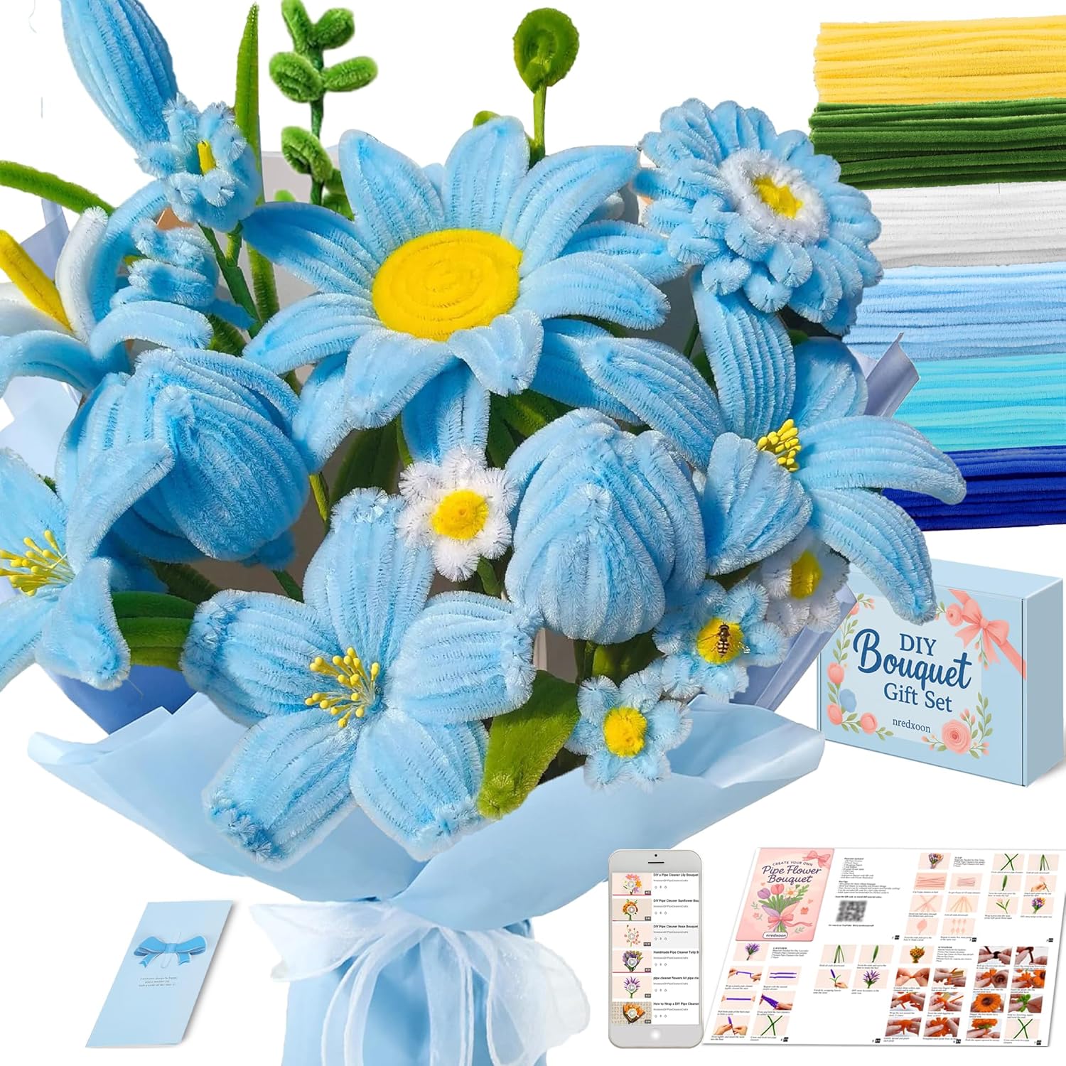 | Included Components | 1 Hot Glue Gun, 2 bouquet wrapping papers, 1 gift card, 20 flower wires,2 floral tapes,1 glue stick,1 silk ribbon, 400 vibrant 8mm chenille stems, step-by-step instructions (both printed and video-based) |