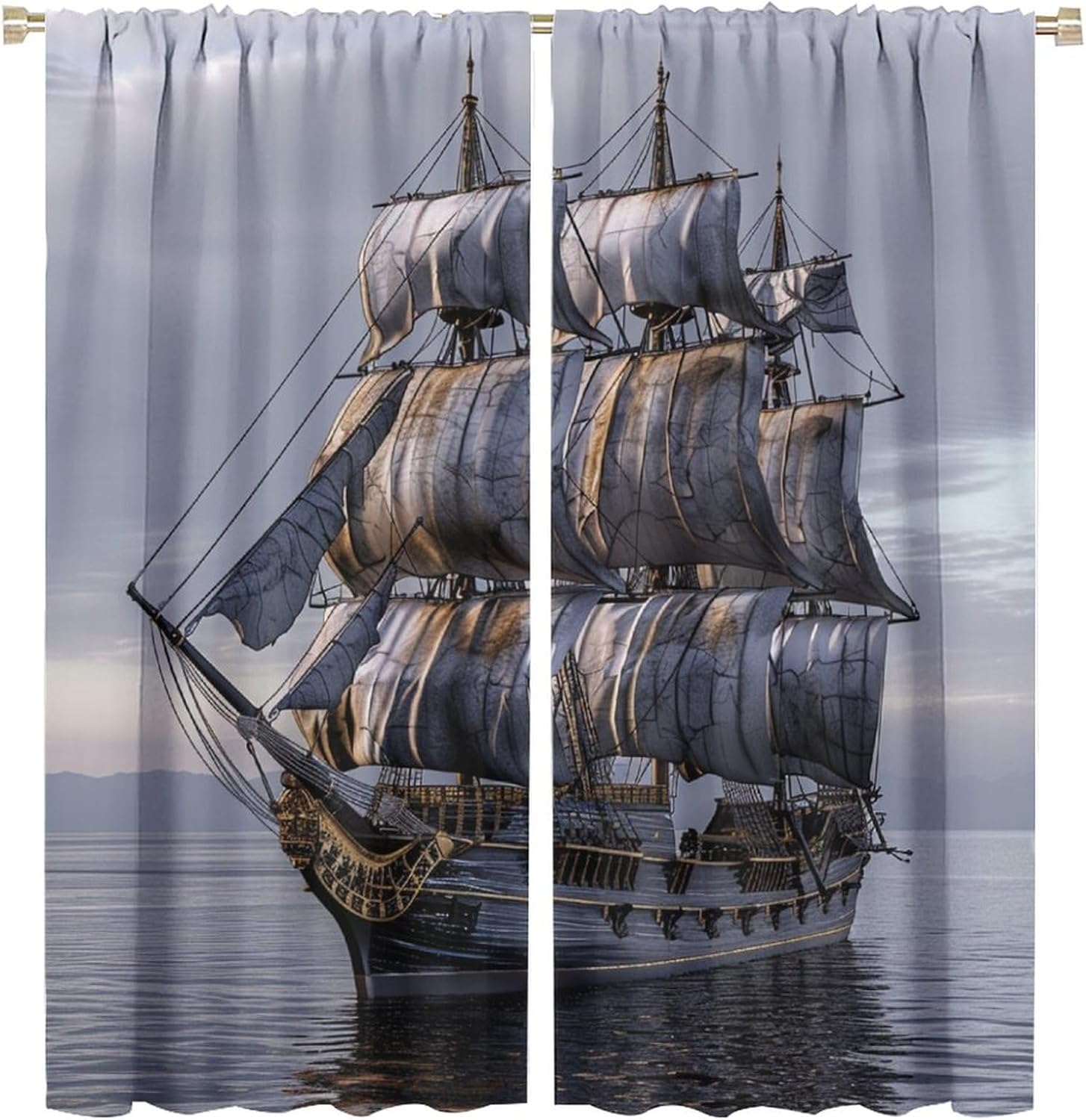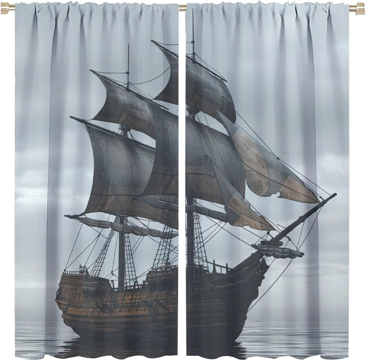 Welcome to our store.Pirate Ship curtains is the beautiful choice for bedroom.The design is versatile and can blend with various home decor styles.Good and Healthy materialOur curtains are made of safe polyester fabric. Total size: 45" L × 42" W (114cm × 107cm),Includes two pieces, each of which measures:45" length × 21" width (114cm × 53.5cm).Total size: 54" L × 42" W (137cm × 107cm),Includes two pieces, each of which measures:54" length × 21" width (68.5cm × 53.5cm).Total size: 63" L × 42" W (160cm × 107cm),Includes two pieces, each of which measures:63" length × 21" width (160cm × 53.5cm).Total size: 63" L × 55" W (160cm × 140cm),Includes two pieces, each of which measures:63" length × 27.5" width (160cm × 70cm). Total size: 63" L × 63" W (160cm × 160cm),Includes two pieces, each of which measures:63" length × 31.5" width (160cm × 80cm). Total size: 72" L × 63" W (183cm × 160cm),Includes two pieces, each of which measures:72" length × 31.5" width (183cm × 80cm). Total size: 63" L × 72" W (160cm × 183cm),Includes two pieces, each of which measures:63" length × 36" width (160cm × 91.5cm).Total size: 84" L × 84" W (214cm × 214cm),Includes two pieces, each of which measures:84" length × 42" width (214cm × 107cm).Our curtains are perfect for Late sleepers, Shift workers, Seniors, Infants, Students, Computer operators and many more.Kindly Remind:- Don't use sharp things scratching curtains.- For proper fullness panels should measure 1.5-2 times the width of your window.- As different computers display colors differently, the color of the actual item may vary slightly from the above images.