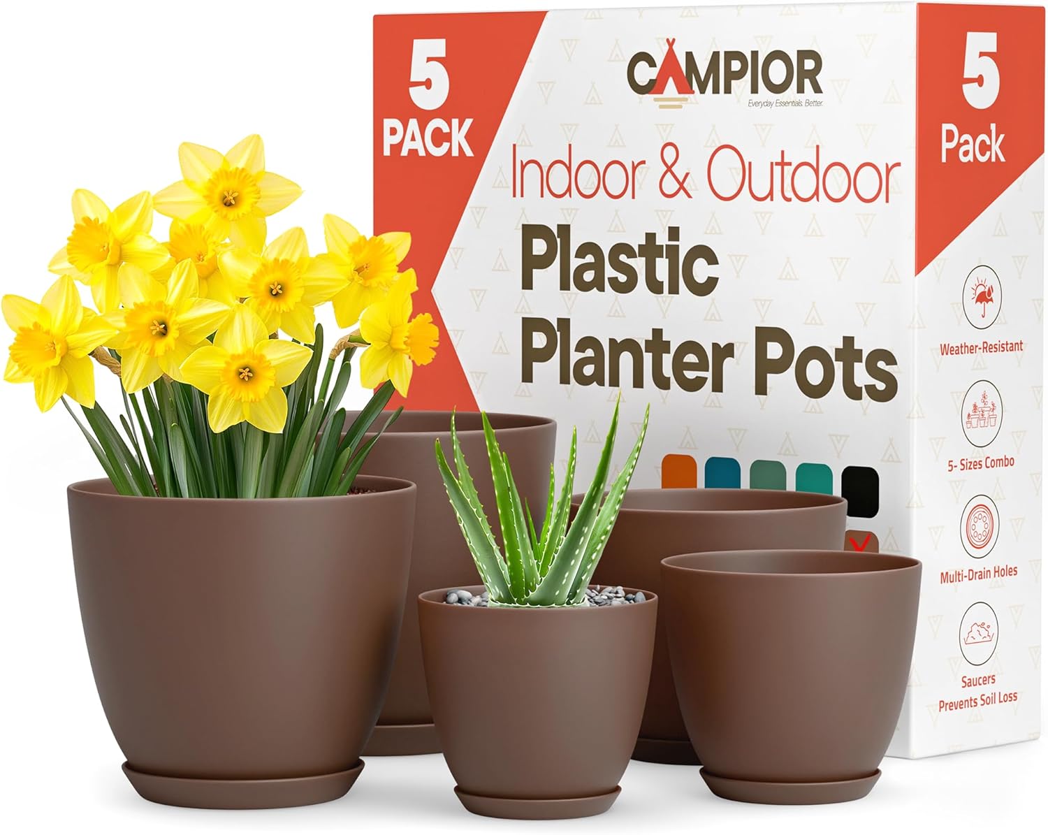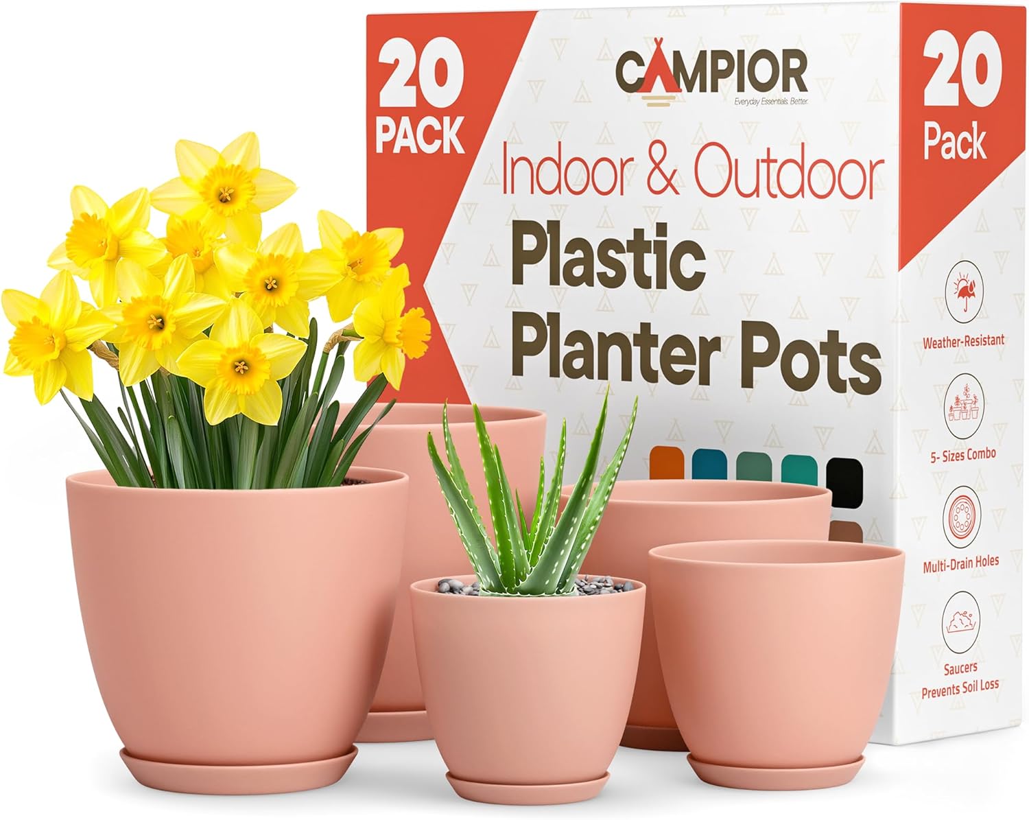 Upgrade your plant care routine with our thoughtfully designed plant pots, featuring a multi-drainage system that prevents overwatering and soil loss while keeping roots healthy. Made from durable and weatherproof PP plastic, these outdoor plant pots resist cracking, peeling, and extreme temperatures, making them perfect for both indoor and outdoor use year-round. Whether you're expanding your plant collection or gifting a fellow plant lover, our bulk packs provide an affordable and convenient way to grow more greenery. Say goodbye to messy watering—our mess-free design includes removable plant saucers and drainage holes that catch excess water, keeping your floors clean and your plants thriving. Designed to blend seamlessly with any décor, these stylish and versatile plant pots come in sleek matte finishes, minimalist stripes, or subtle speckles, making them a beautiful addition to your home, office, or garden. With various size options ranging from 6” to 10”, you can mix and match to create the perfect plant display, from small herbs to lush foliage. Plus, their lightweight and low-maintenance design makes repotting, cleaning, and rearranging effortless—spend less time worrying about your pots and more time enjoying your plants!
