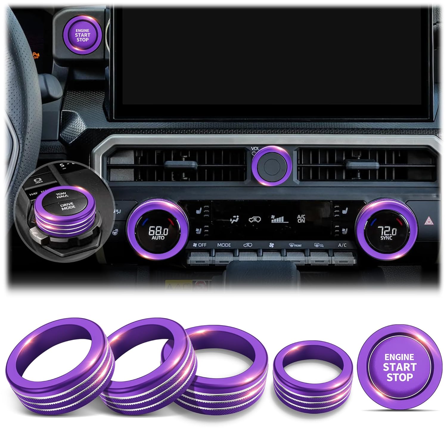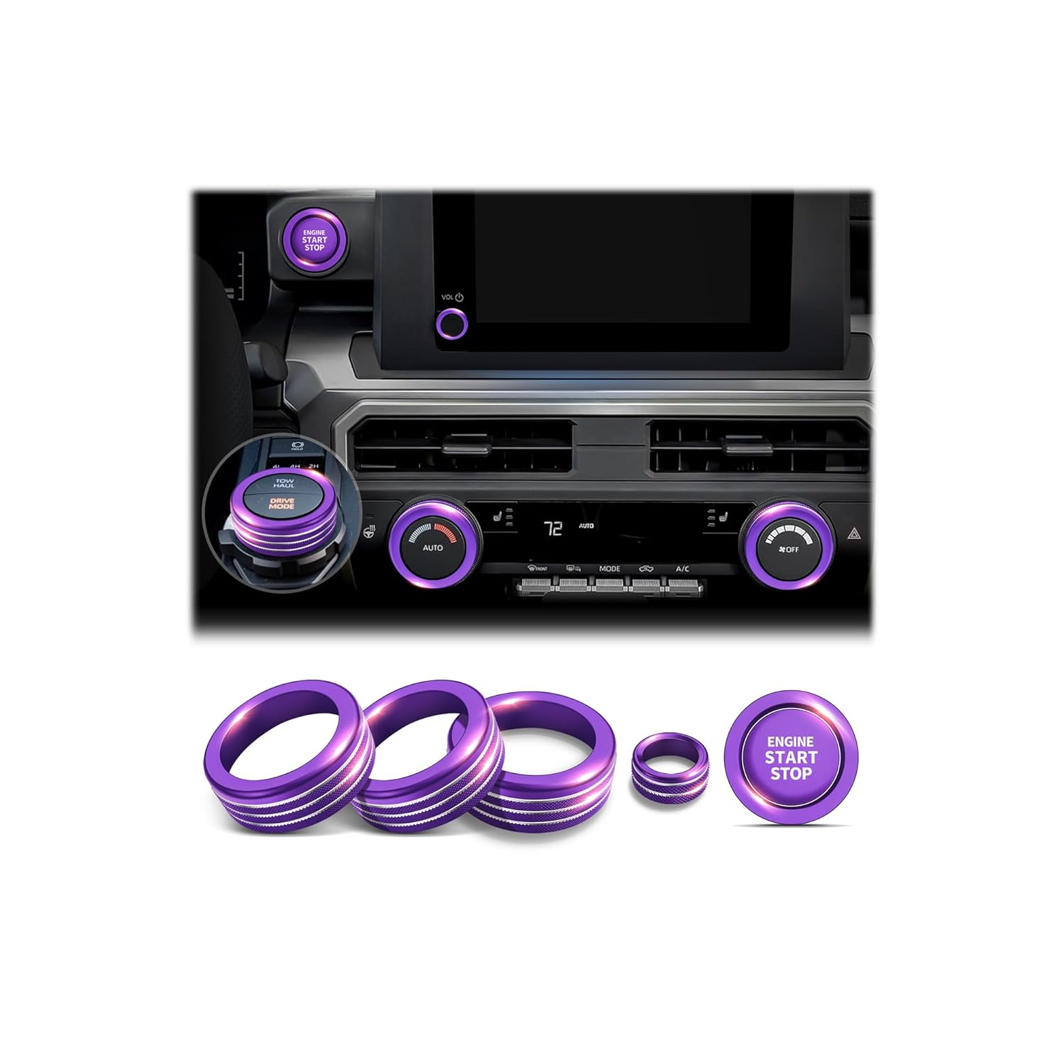 COMPLETE SET FOR FULL CUSTOMIZATION: This 6-piece set includes covers for your 4WD switch, volume knob, A/C controls, and push-start button for a cohesive look