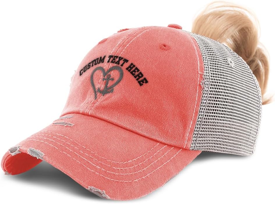 Elevate your wardrobe with our premium 6-panel ladies baseball cap, featuring the Nautical Heart And Anchor B Embroidery—a bold design that blends coastal charm with classic detail. Made from high-quality 100% cotton, this embroidered female baseball cap delivers breathable comfort and durability for all-day wear.With a high pony hat silhouette and crisp embroidery, this cute baseball cap stands out wherever you go. The mid-profile fit, pre-curved bill, anti-sweat band, and special hole in the back for your hair make it a go-to hat ponytail accessory.The reliable hook and loop closure ensures a secure fit, while the design speaks to pony tail hats women want with personality. Great for casual outings, events, or gifting—this baseball cap makes a thoughtful choice for birthdays, Christmas, and Mother’s Day.Whether you're looking for ponytail hats for women, a girls ponytail hat, or a black ponytail hat with flair—this versatile design delivers.