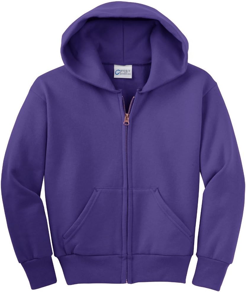 Nothing better to cool out than your favorite zip up hoodie at an economical price 7.8-ounce, 50/50 cotton/poly, fleece, Air jet yarn for a soft finish, pill-resistant, two-ply hood, no drawstring hood, taped sleeves, side seams, front of bag, youth Sizes: XS (2-4), S (6-8), M (10-12), large (14) – 16), XL (16-18-20).