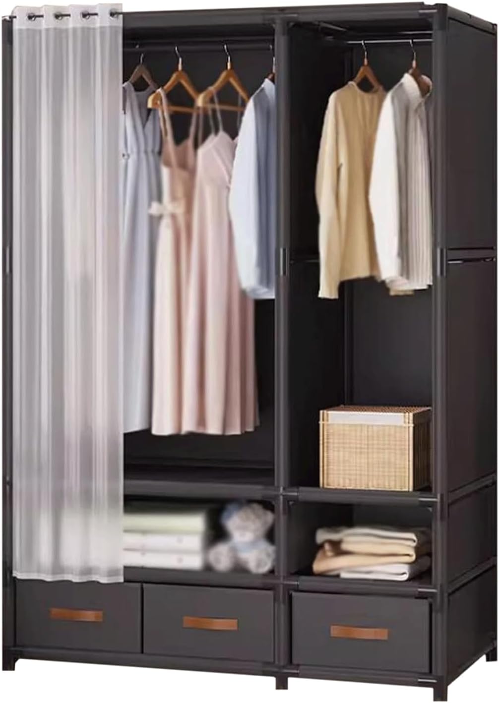 Say goodbye to clutter: This closet has various storage sections, it can be placed in various small spaces, saving you time and space. It helps you keep your clothes and accessories organized, so you can find what you need when you need it.Feature:our wardrobe it provides super load capability to ensure sturdier and more stable, not be bent easily, will prove to be sturdy and works for years.That creates a spacious space for for bedroom,to meet your long term and all aspect storage need.product name: closet/portable closet/clothes closet/portable closets/wardrobe closet/portable wardrobeCondition: 100% brand newProduct material: metal ironProduct color: black, whiteProduct style: single row (A), single row+2 storage cabinets (B), double row (C), double row+2 storage cabinets (D)Single row product size (LxWxH): 71x45x168.5cm/28x17.7x66.3inDouble row product size (LxWxH): 109x45x166.5cm/42.9x17.7x65.6inPacking size approx. (LxWxH): 70x34x10cm/27.6x13.4x3.9in (single row), 70x34x13cm/27.6x13.4x5.1in (double row)Product weight is about: 3kg/6.6lb (single row), 5kg/11lb (double row)Whether to assemble: yesPacking list: 1 X closets