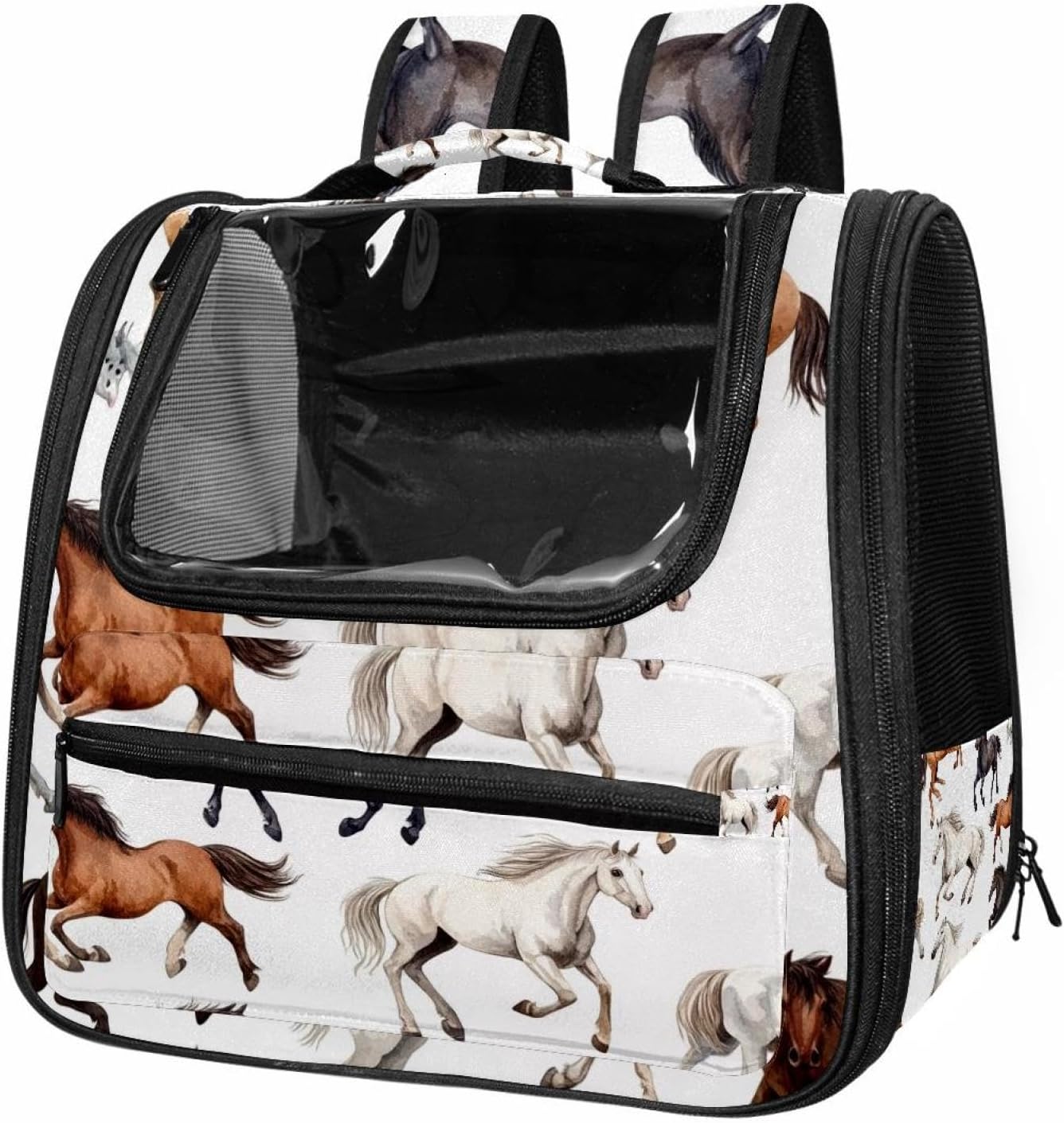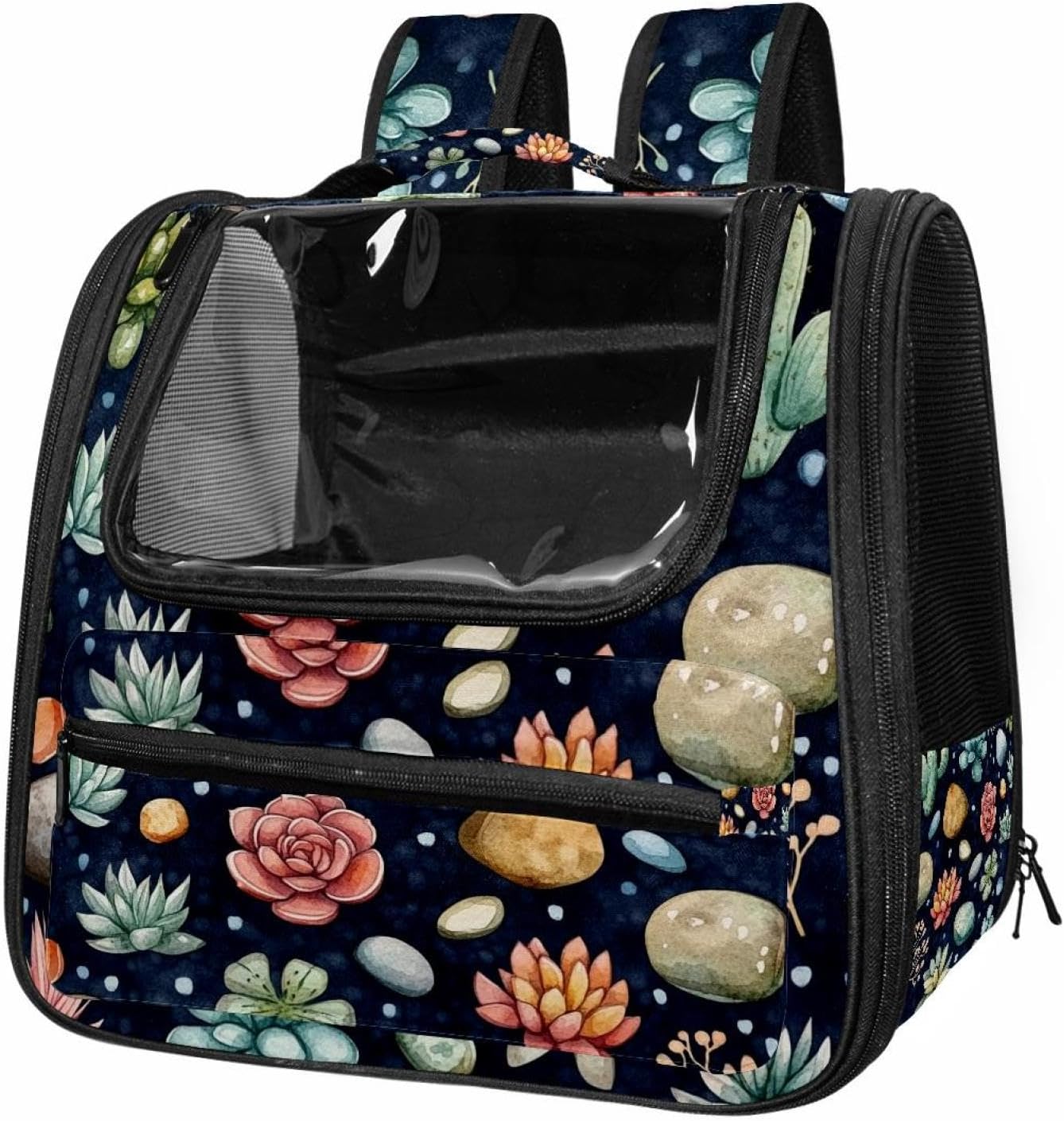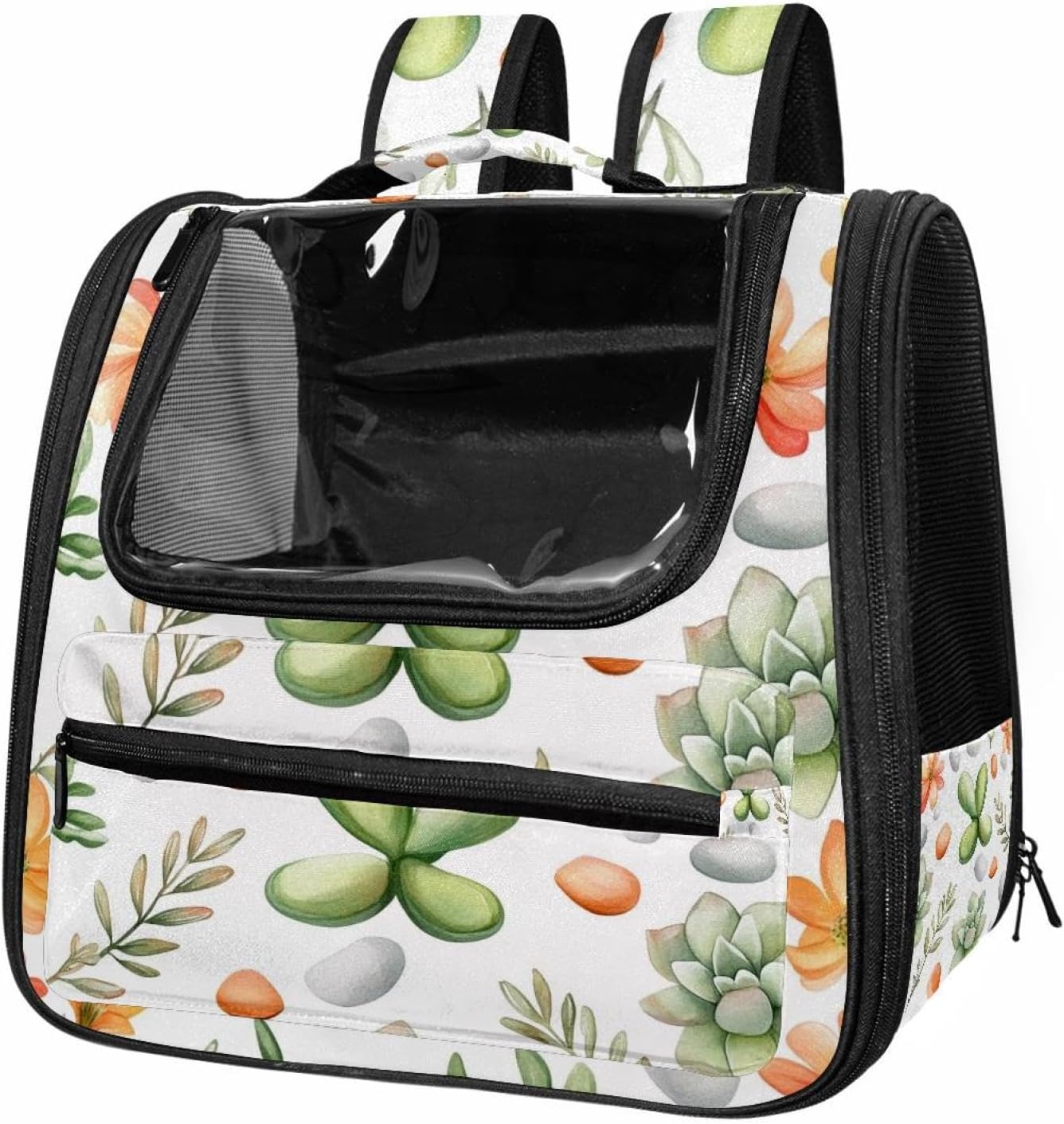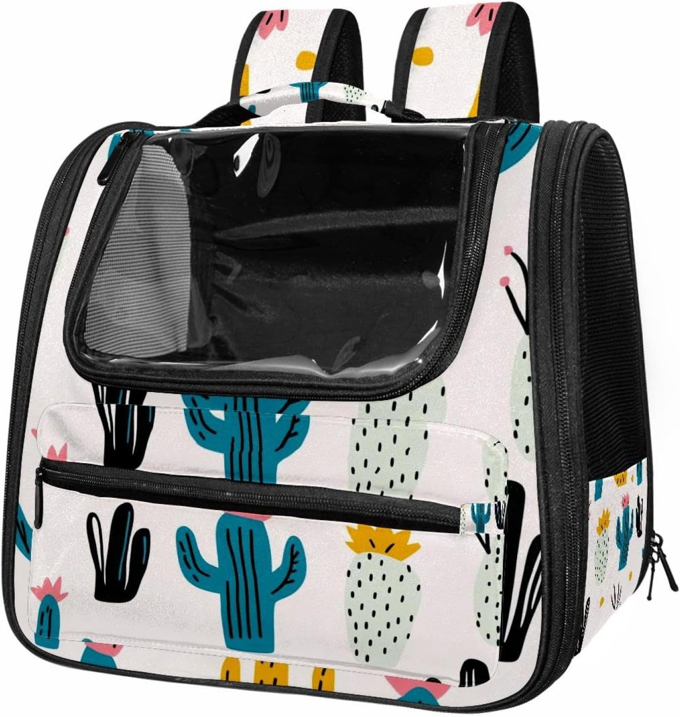 Well made: Cat Backpack Carrier is made from 900D oxford fabric, pp webbing, velvet, nylon, which is very sturdy, environmentally friendly and breathable. Not easily scratched by pet’s claws, pet backpack carrier is SAFETY & ANTI-SCRATCH. The back padding will give you a comfortable and breathable experience. Ventilated Backpack: With a breathable window in the front, this pet backpack allows cats to enjoy the sun without feeling stuffy. There are two side pockets and one big front pocket, and you can take foods or toy for your kitten pet. It is big enough for cat to turn around, and there are side pockets and hook holes, you will enjoy the greatest convenience when taking your cat out. Perfect size: Cat carrier is 15.75x9.84x13.78in/40x25x35cm. Fits most small/medium sized cat, dog, and pet. Quality fleece bed provide a comfortable place for your pet. Lightweight and easy to carry to all places. Built-in harnesses keep your naughty friends from escaping. Removable cosy mat for easier cleaning and let your pet enjoy it inside. Easy to carry: The adjustable shoulder strap of pet carrier bag help you hands-free carrying and makes it the most safe and convenient pet carrier bag for your travel. Seat belt design provide pets with safety protection throughout the trip. Pad protection keep your pets comfortable during travel. Unique Design: Innovative inside graphic design gives you a stereoscopic 3D visual experience. You also send us the photos you interest to make your unique dog or cat carrier. Pet bag is also a amazing gift for pet lover.