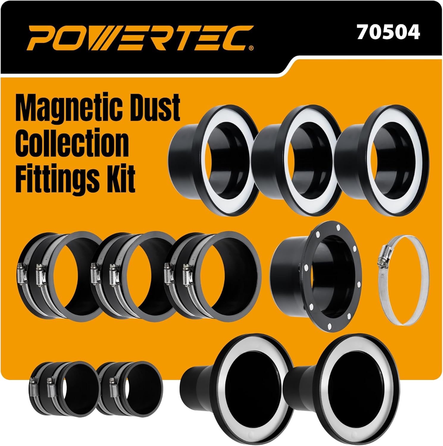 Streamline your dust collection workflow with the POWERTEC 70505 Magnetic Dust Collection Fittings Starter Kit. Built as a straightforward entry-level system, this kit allows you to instantly switch one 4" dust collector hose between two machines—no tools, no clamps, and no frustration.DESIGN The magnetic connector uses powerful neodymium magnets to lock securely onto steel port receivers, creating a stable, airtight connection that stays in place during operation yet releases easily when it’s time to move on. Durable ABS construction and zinc-plated steel receivers ensure long-lasting performance in demanding shop environments.FEATURES Perfect for table saws, planers, jointers, band saws, and other 4" dust ports, the 70505 starter kit offers a clean, flexible dust collection solution without the complexity of permanent ductwork. It’s the ideal way to upgrade your shop efficiency—one connection at a time.