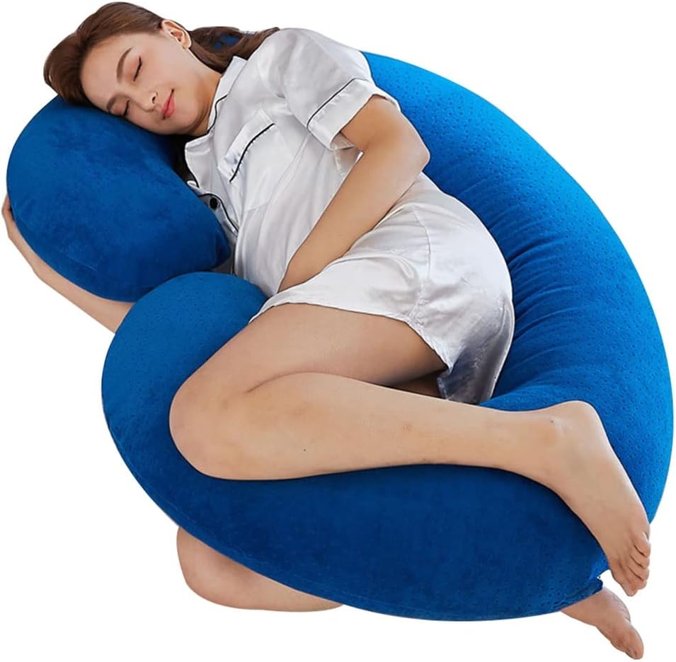 Why Choose Full Body Pregnancy Pillows?Unique U-shape Design Provides Full Body Supportmaternity pillow is specifically designed to accommodate the contours of the pregnant body. The perfect mix of U-shaped pillow and C-shaped pillow provides support for every part of your body including your bump, knees, hips, back, neck, head, makes you feel comfortable when you sleep.▶ Help You To Say Goodbye To Aches And Pains!Pregnancy Body Pillow conforms to the shape of your body, which helps align your spine in a more normal way and relieves back pain and stress. This causes you to breathe easier, promotes better circulation, and aids in muscles relaxation.It also helps elevate your leg to improve blood circulation, relieve pregnancy swelling.▶ All-in-One and Widely-Use PillowThis body pillow allows manipulating the shape to your liking. You can sleep with it, sit up with it supporting your swollen feet, use it to give your back extra support while reading. Even after you give birth, our pillow will support your baby during bottle-feeding.▶ More Than Just A Pillow For Pregnant WomenThis full body pillow is perfect for anyone needing more support, recovering from surgery, or tired of having to use separate pillows to support their head, neck, legs, and backWarm tip: In order to facilitate transportation, this product is vacuum-packed. When you open the package, you only need to place it naturally, and tapping can quickly restore the pillow to its original fluffy state, without harming the quality and user experience