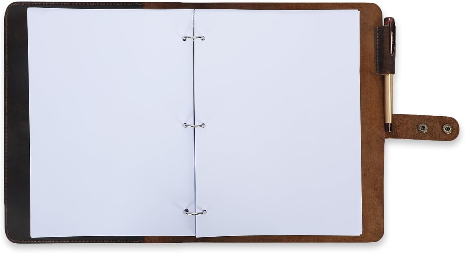 Elevate your professional organization with this premium leather 3-ring binder portfolio from CestAntiQ. Designed to accommodate standard 8.5x11 inch letter-size papers, this sophisticated padfolio features a refined tan brown leather exterior that develops character with use. The practical 3-hole design allows for easy paper insertion and removal, making it perfect for storing resumes, meeting notes, and important documents. This versatile business organizer works beautifully for both men and women, offering a timeless and professional appearance suitable for interviews, conferences, or daily office use. The durable construction and refillable design ensure long-lasting functionality, while the classic styling adds a touch of sophistication to your professional accessories. Measuring 10.8 x 8.6 x 2 inches, this portfolio provides ample space for your documents while maintaining a sleek profile that's easy to carry.