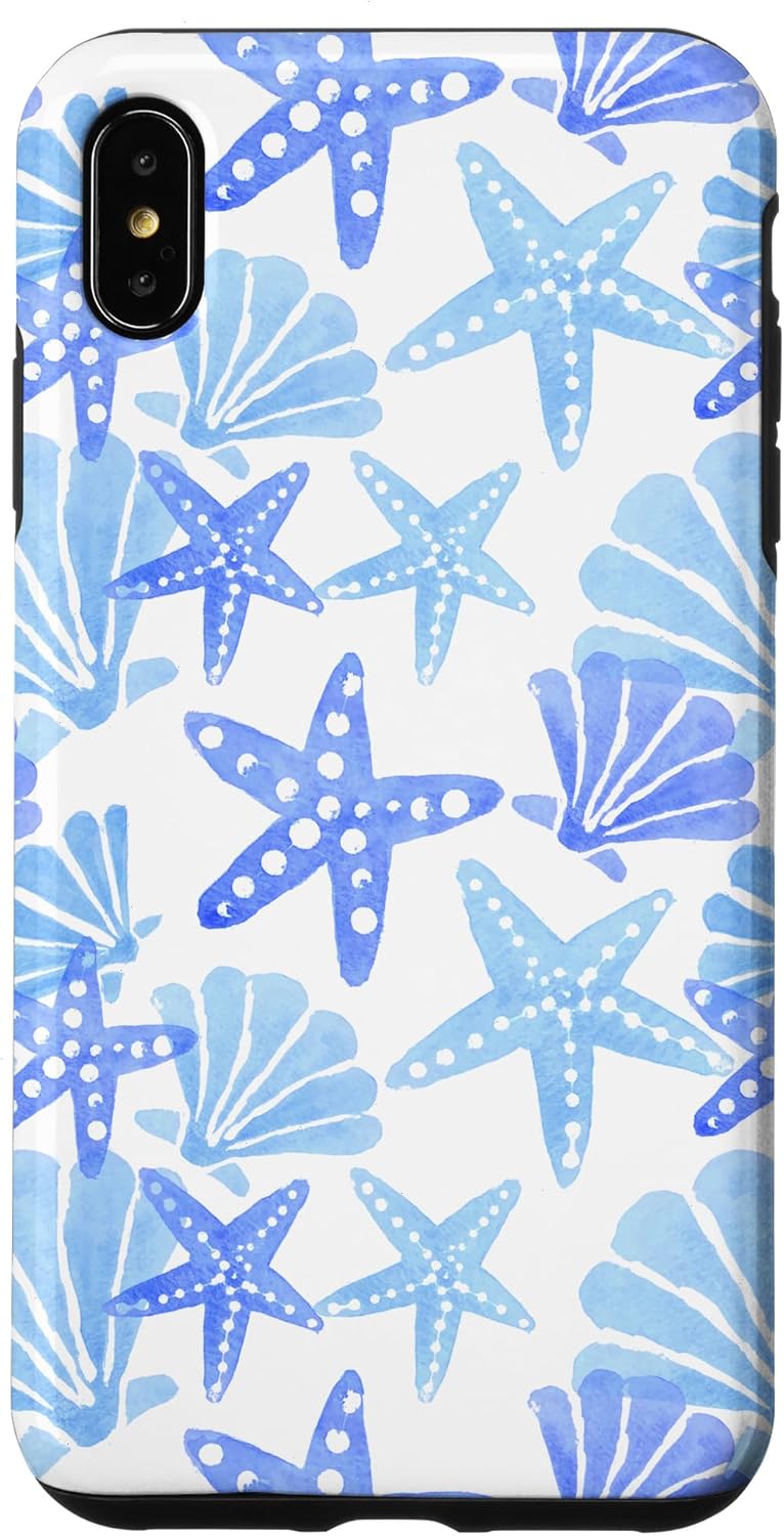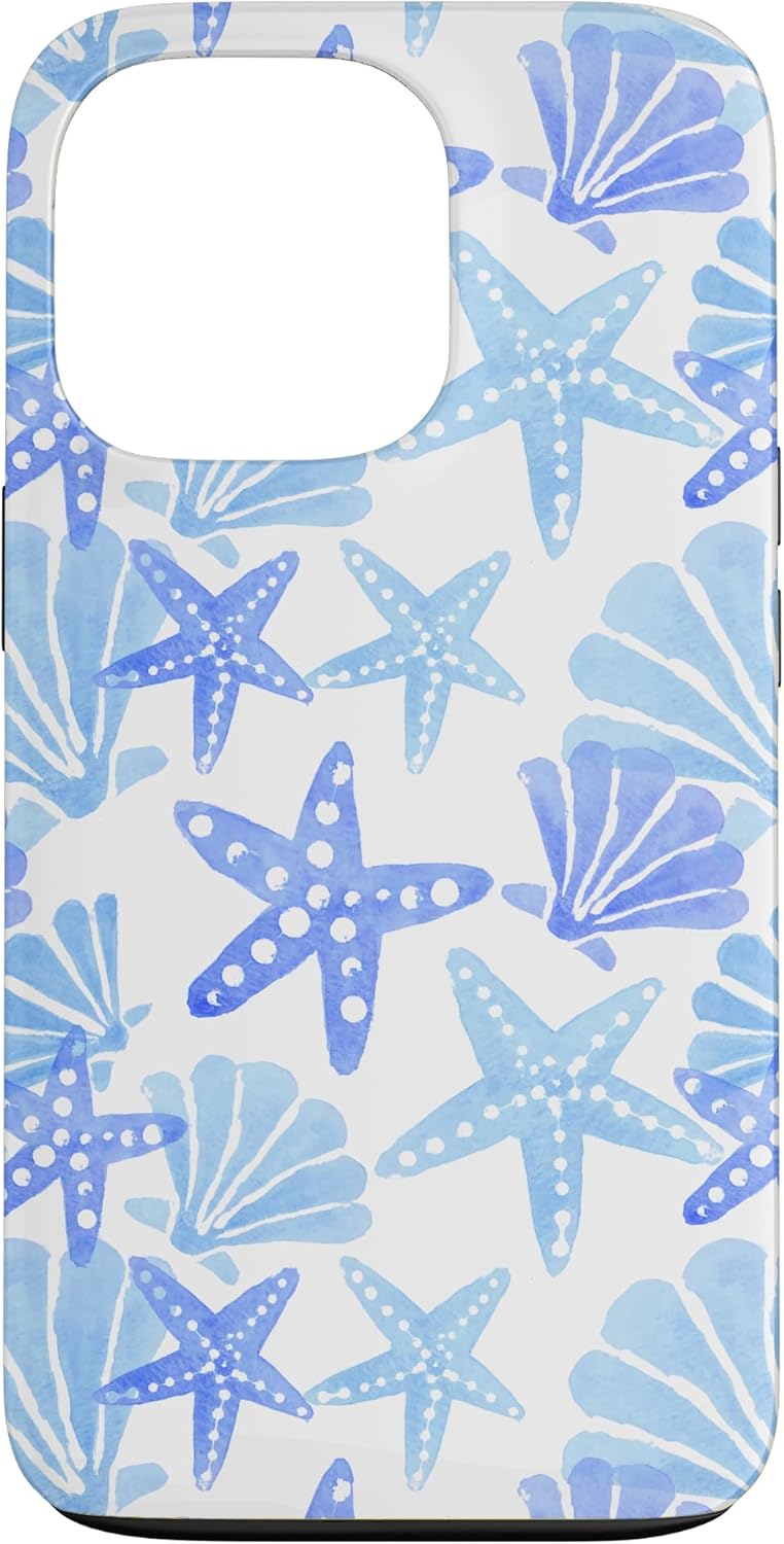 Coastal Preppy Style design. Coastal granddaughter hand-painted watercolor design with shells and starfish in blue and white. Abstract, beachy design. Perfect for fans of the preppy aesthetic, grandmillennial, beach, summer aesthetic, beach girl aesthetic, nautical, ocean, boating and sea.