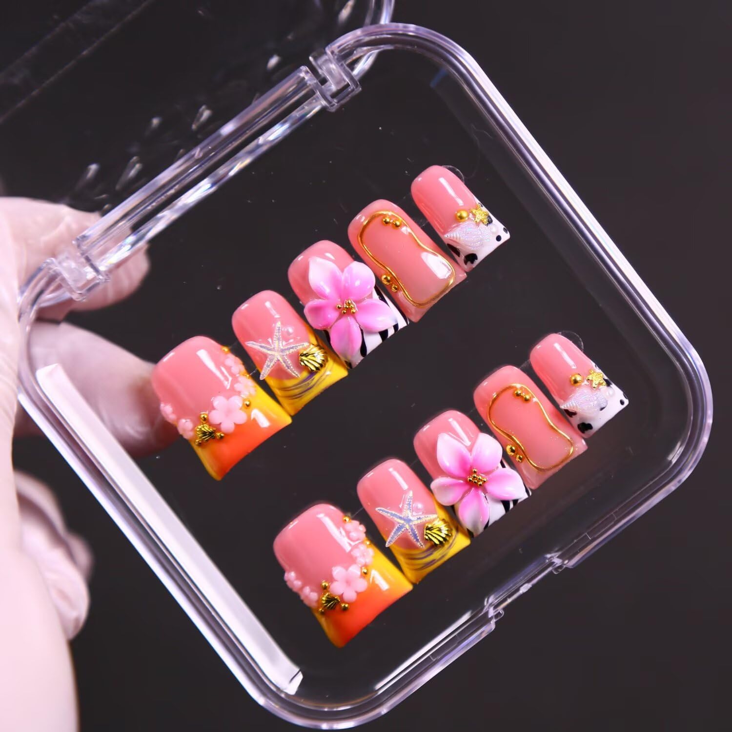 Fashion Art Nails: Each press on nails set shows unique handmade designs, whether it is leopard prints,diamonds, floral and other popular patterns. 3D gel multi-layer nails design is the depth and texture that can not be produced by mechanical nails