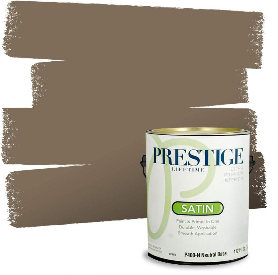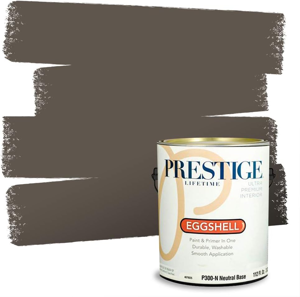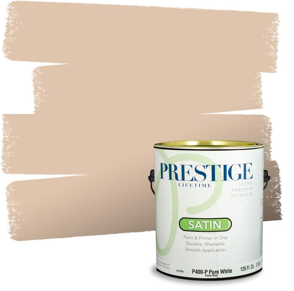 Prestige Paints Ultra Premium Acrylic Latex Interior Paint self-primes over properly prepared uncoated drywall, stucco, plaster or previously painted interior surfaces. Ideal for living rooms, family rooms, media rooms, bedrooms, dining rooms, and hallways. On stained or glossy surfaces use a stain blocking primer sealer. Certain colors may require more than one coat for complete hide. Actual paint colors may vary from on-screen and printer representation. Surface Preparation: All loose paint should be removed. The surface needs to be cleaned with detergent to remove dirt and grease and other contaminants. Rinse well to remove all soap residue and let dry. Scuff sand glossy surfaces and repair all imperfections. Remove dust with a damp cloth and allow to dry. New plaster must be properly cured. Patch cracks and holes, sand smooth when dry, then prime with this product. New woods may require and oil base primer/sealer. On metal use proper Rust Primer. Application: Stir or mix paint before using and intermix all containers for color uniformity. Apply this product as is with a high quality applicator such as a 3/8 inches nap roller cover, brush or pad painter. Thin sparingly with water if necessary for spraying. Dry Time: Dries in one hour. Recoat, if necessary, after four hours. Can clean gently with non-abrasive cleaner after 14 days. Cleanup: Use warm water and soap. A Flat finish provides a smooth, uniform look. An ideal choice for formal rooms in your house, such as living rooms and dining rooms. Flat or "matte" finishes get their name from the lack of reflection from the painted surface. This is one of the benefits because it helps hide surface imperfections, such as dents, nail holes, or patches. It is also a good choice for ceiling painting. Flat finishes often require fewer coats than semi-gloss and gloss paints and are easier to touch up because there is less contrast between the touch-up paint and the rest of the painted surface.
