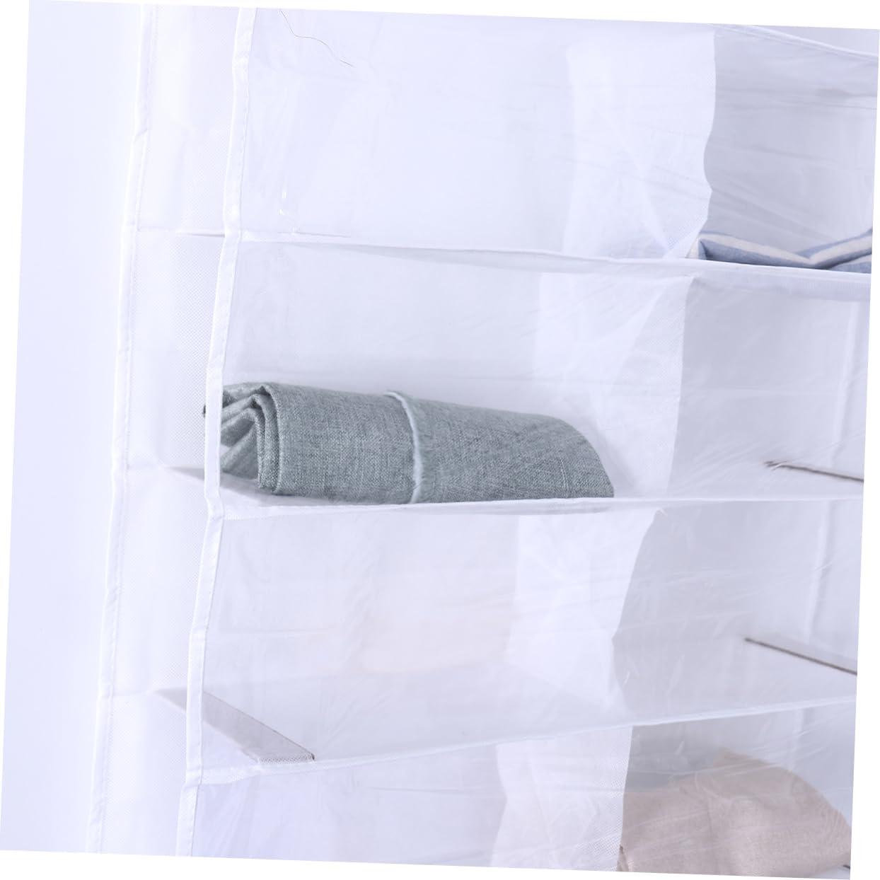 Package List 1 x 26 Large Pocket Over the Door Hanger Shoes Organizer Closet Shelves Rack Hanging Storage Space Saver(White) Features - Size: Approx. 16.5 x 55 cm/ 6.5 x 21.6 x 5.12 inch (LxWxH) hanging shelves for closet. - Material: Polyester and metal door hanging storage pocket -Product Info:Shoes and miscellaneous storage bag - Great large capacity, 26 divided shelves offer enough storage for pairs of shoes, slippers, belts, scarves and other small items and will save large space for your home shoes hanger for door. - A great over the door organizer space saver to keep your shoe collection neatly organized for a bedroom, closet, dorm room, , and other tight living spaces door hanging storage. - mounting, quick and easy to assemble, no extra required closet organizer. - Includes a convenient hook to position the organizer over the door, closet or cabinet. Reasonably Utilizes the unused storage space the maximum degree shoes organizer closet. - ColorWhite entryway hanging organizerGoods Descriptiondoor hanger for shoes Idea for space saving for your home in no time.hanging shoes rack Still confused with the messy shoes on the floor or the space of the shoe shelf for storage? Well, let's bid farewell to these trouble with thisover the door hanger shoes organizer, this hanger comes with 26 large pocket which can hold up to 26 pairs of shoes and some other small items such as hats, clothing accessories, bath and shower accessories, and other personal supplies.shoe holder for door It's assembled with reinforced metal frame and hooks for solid and strong holding, you can quickly and easily it over a closet or bedroom door for neat and orderly storage